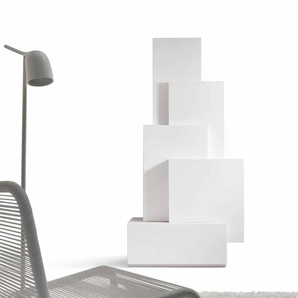 خزانة قائمة على الأرض مكونة من 5 عناصر MDF قابلة للتكديسمطلي باللون الأبيض غير اللامع.