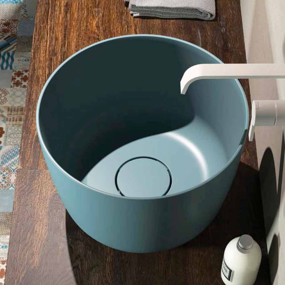 حوض غسيل دائري حديث مصنوع في إيطاليا، لاليو لاليو هو حوض دائري ذو سطح عمل بتصميم بسيط وأنيق. مثالية لإنشاء واحة من الاسترخاء والعملية في حمامك.