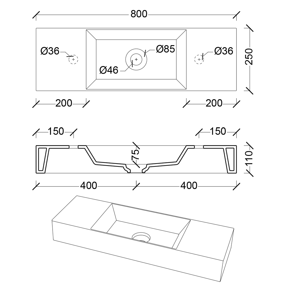 ملاحظة : يمكن استخدام هذا المنتج كدعامة أو معلق. مُجهّز للحنفيات اليمنى أو اليسرى أو الحائطية (سيتم تحديده عند الطلب).