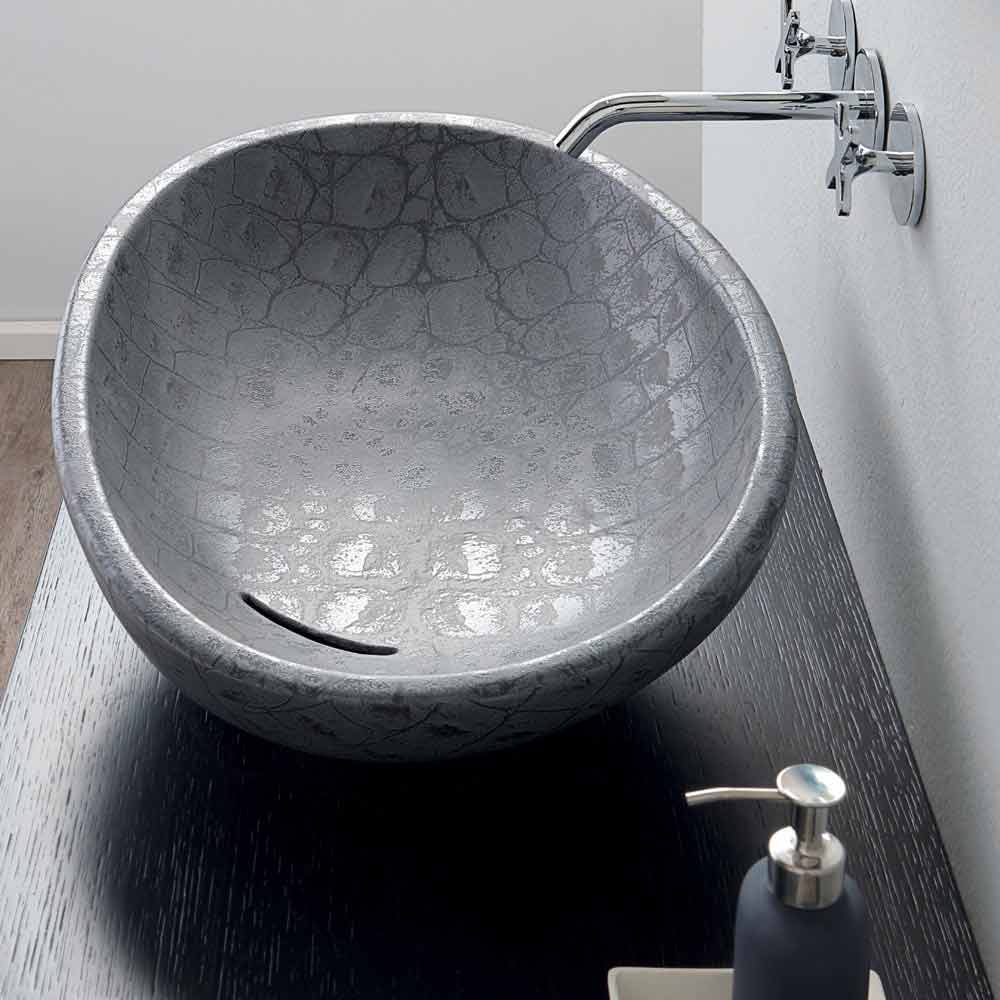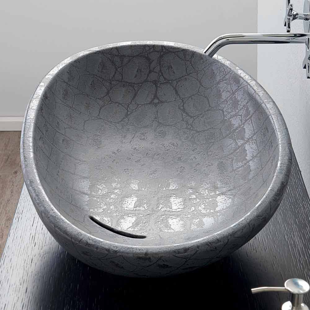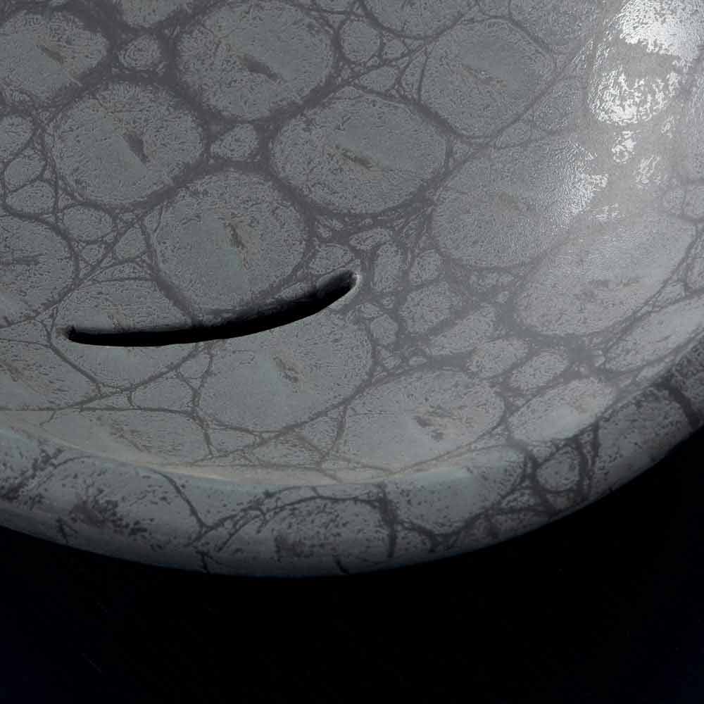 حوض غسيل سيراميكي بطبعة تمساح رمادية لامعة مصنوع في إيطاليا يُعد حوض الغسيل اللامع هو بطل حوض الغسيل الموجود على سطح العمل في حمامك بفضل شكله الناعم والممدود. تم تصنيعها في إيطاليا من قبل حرفيين مهرة في لمسة نهائية من السيراميك الرمادي.