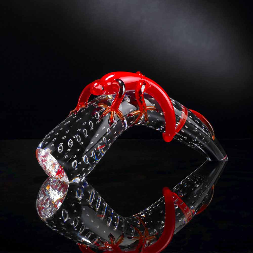 تمثال زخرفي فاخر من الزجاج الشفاف والأحمر صنع في إيطاليا.