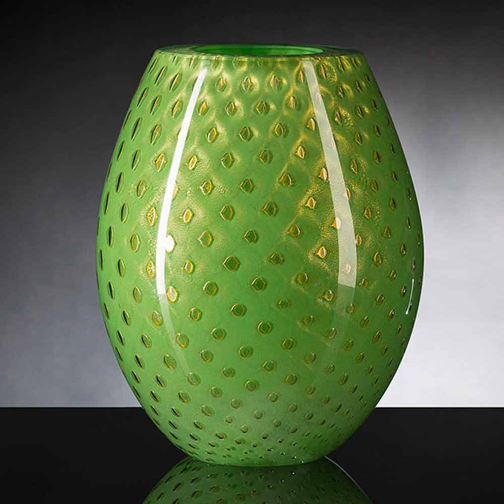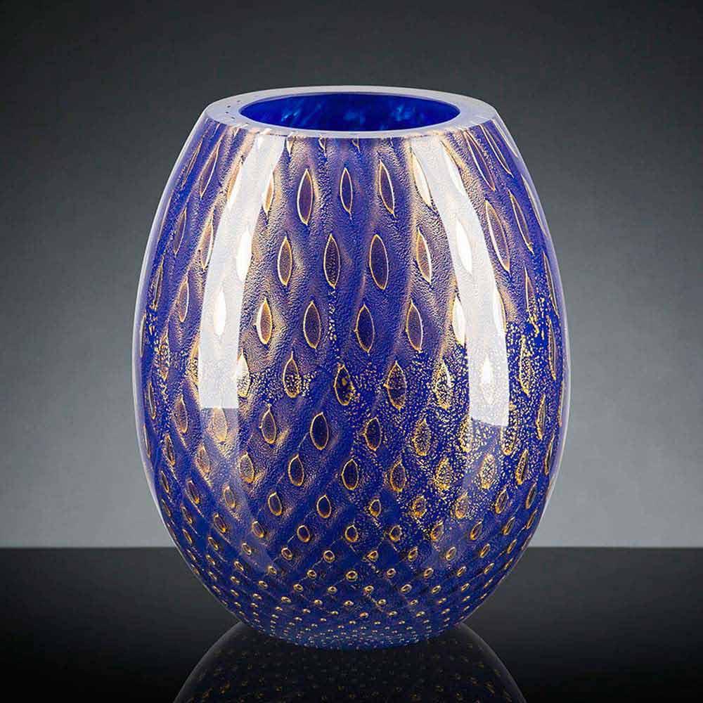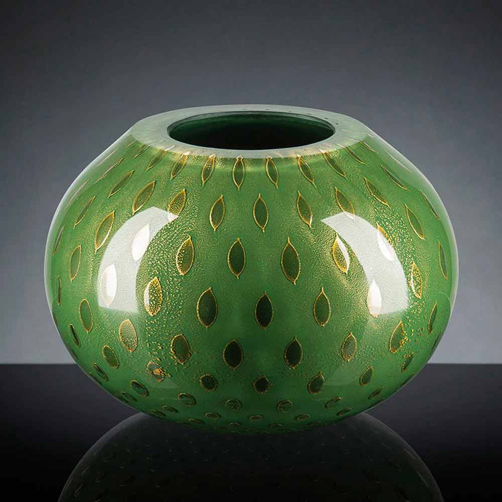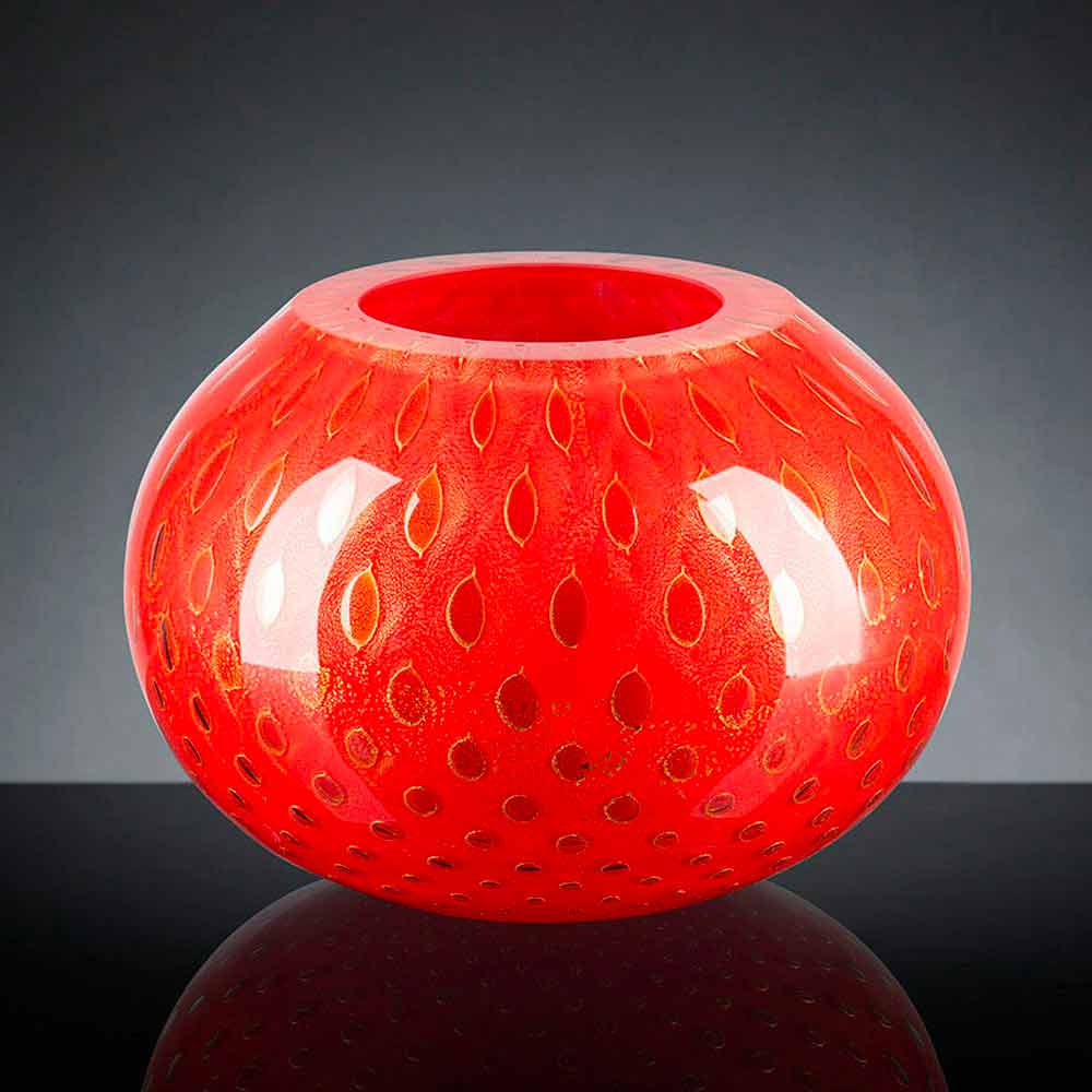 مزهرية داخلية مصنوعة من زجاج مورانو الملون المنفوخ في إيطاليا.