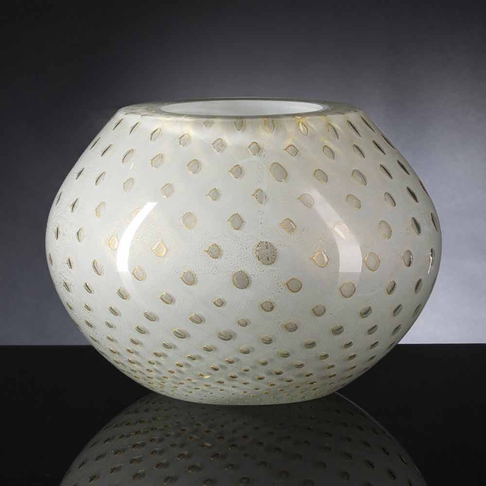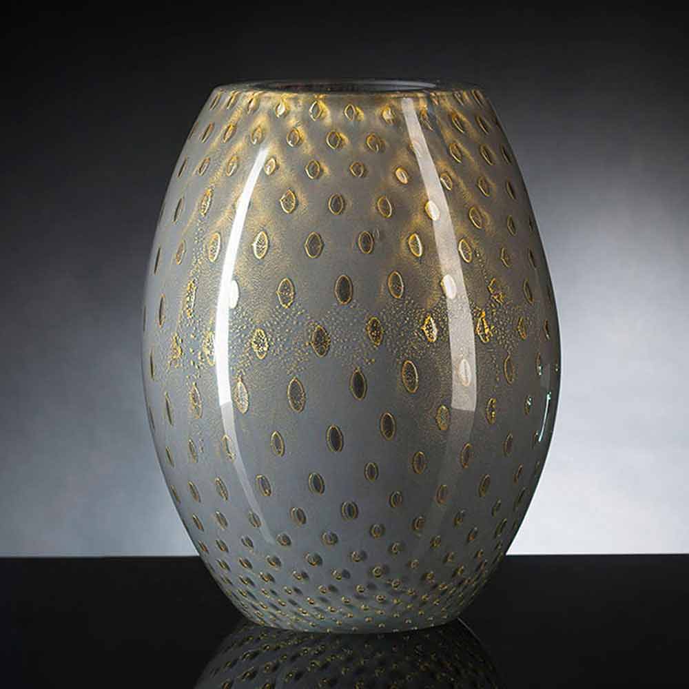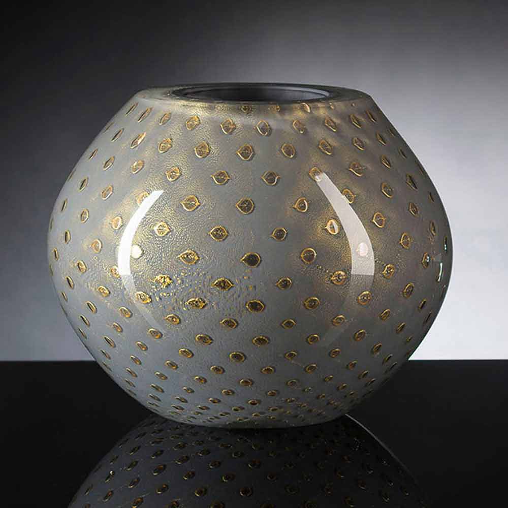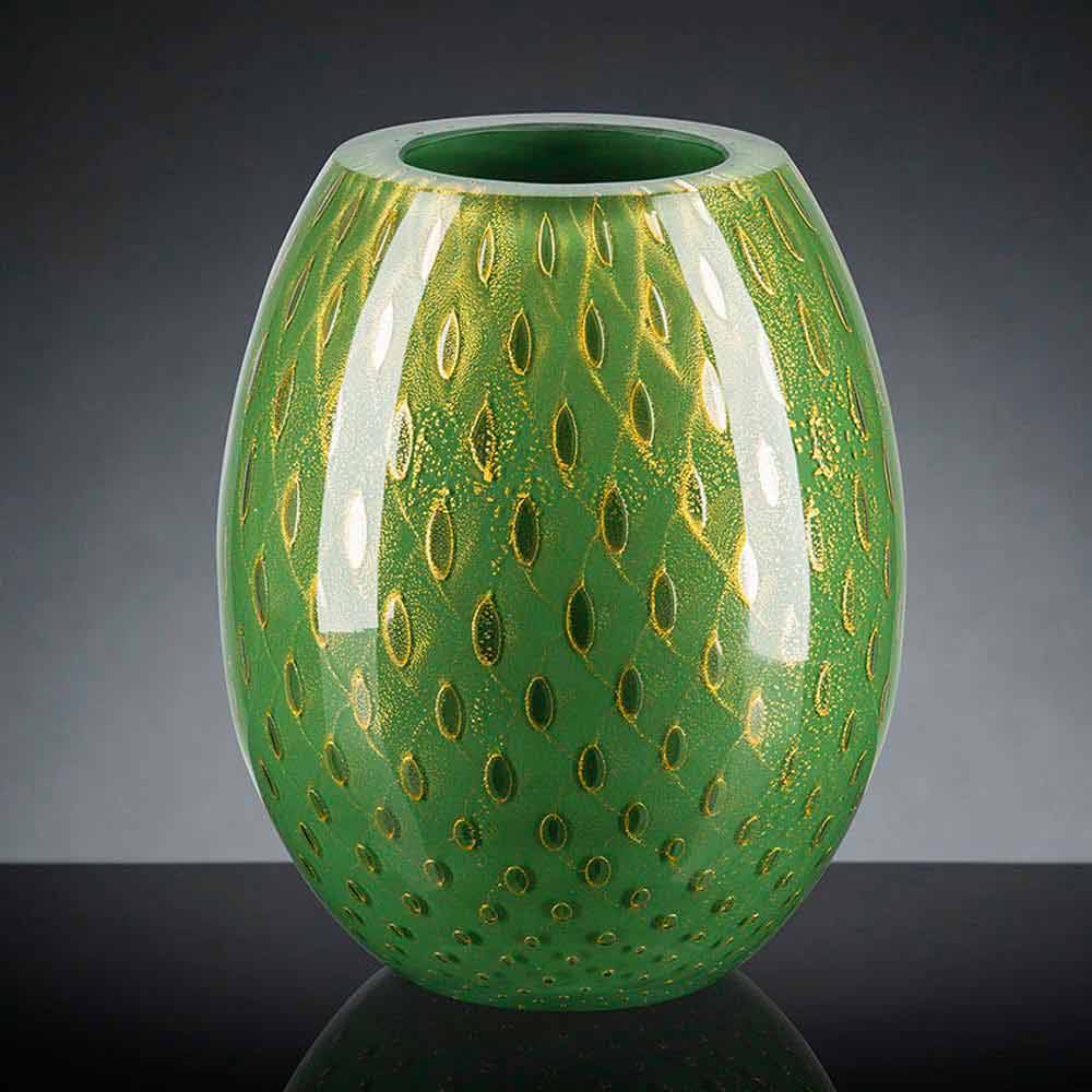 مزهرية داخلية مصنوعة من زجاج مورانو الملون المنفوخ في إيطاليا.