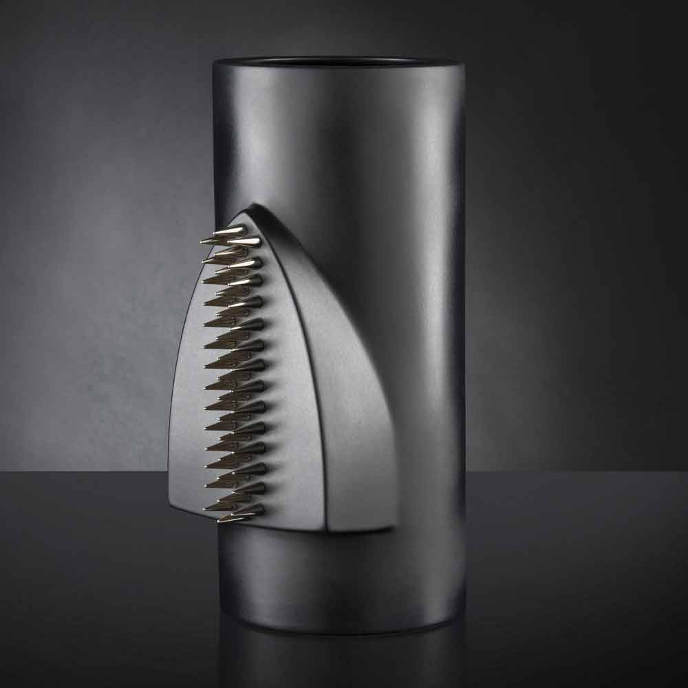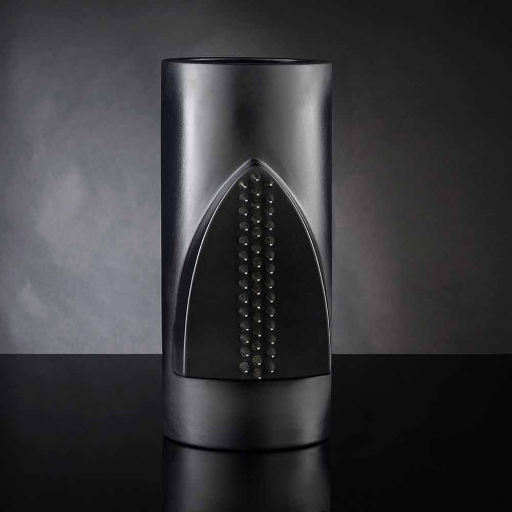 مزهرية زخرفية داخلية من السيراميك الأسود غير اللامع مزينة بمسامير فولاذية، صُنعت بحرفية إيطالية . من خلال التقاء الأناقة الفائقة للسيراميك مع اللمسة العصرية للتفاصيل المعدنية، وُلد عنصر ديكوري للبيئات العصرية، مفعم بالشخصية والطابع المميز، مثالي لمن يحبون تزيين مساحاتهم بإكسسوارات ذات تأثير سينوغرافي قوي يُكمل مظهر الغرفة ويخلق تناغمًا مثاليًا. يُمثل الإنتاج الحرفي إحدى نقاط قوتها، إذ يُعزز قيمة وجودة المنتج، مما يُضفي لمسةً من التميز والرقي . إنه أسلوب مثالي للبيئات الأكثر تنوعًا، من أثاث المنزل إلى الفنادق والمطاعم ومناطق التعاقد والمنتجعات الصحية، بالإضافة إلى مكان لإقامة الفعاليات وحفلات الزفاف.