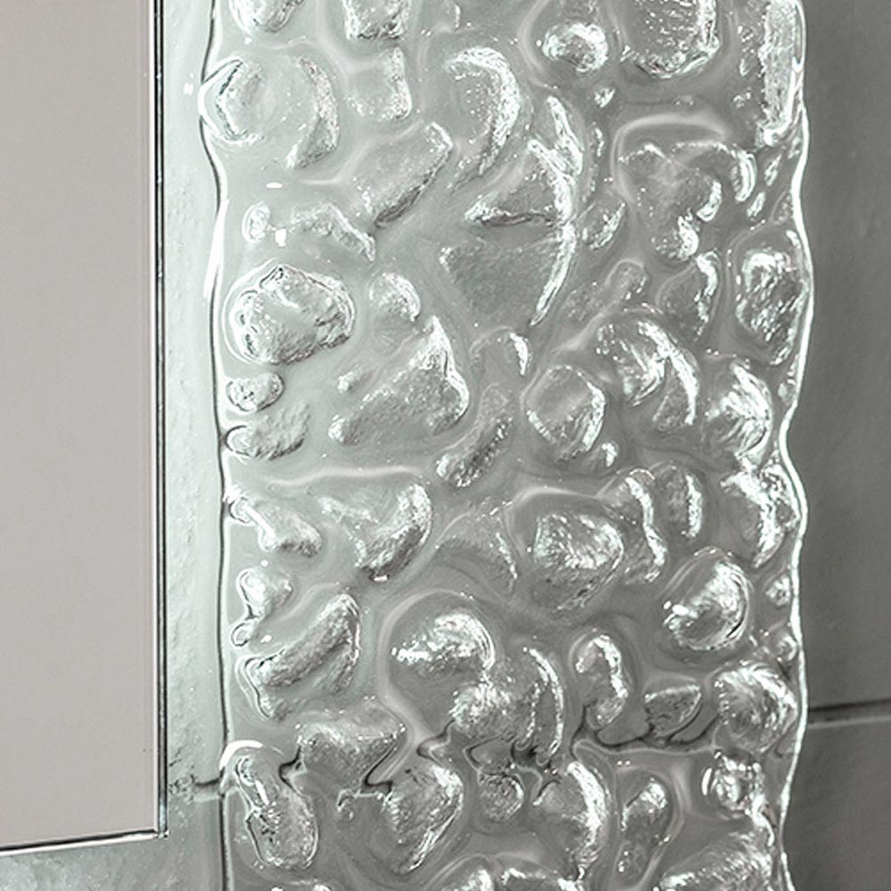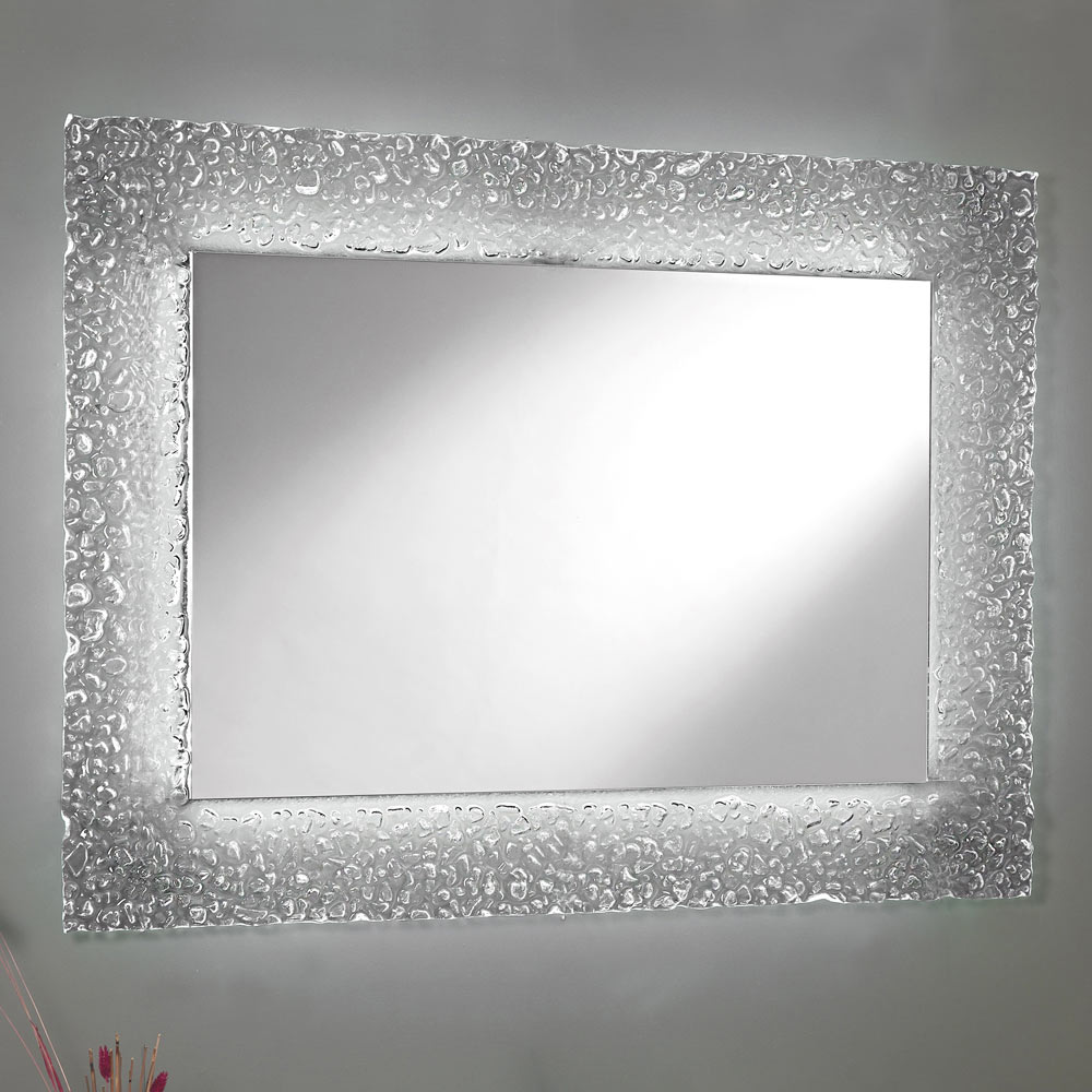 مرآة حائط مزخرفة بإطار زجاجي مدمج وإضاءة LED مدمجة، عالية الجودة صنع في إيطاليا.
