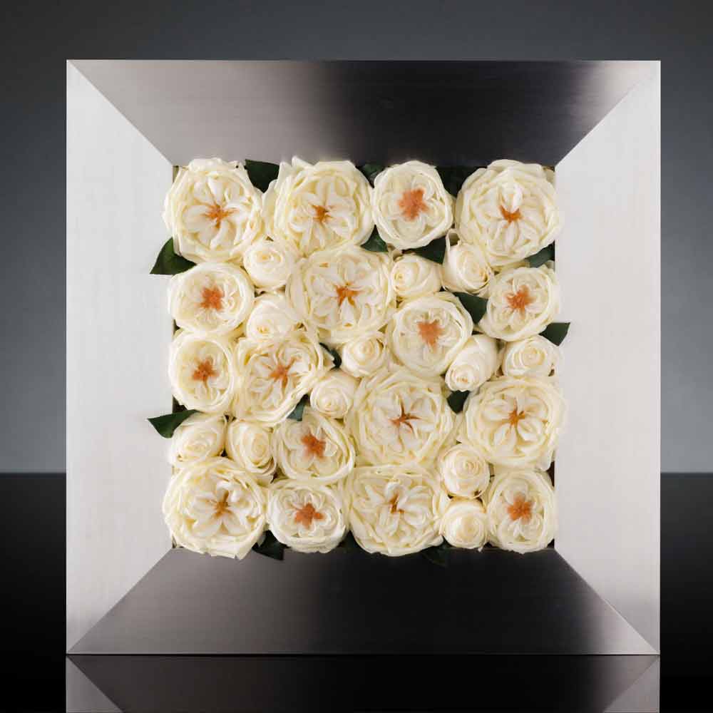 لوحة ديكورية حديثة من المعدن والورود الصناعية صنع في إيطاليا، جيدة.