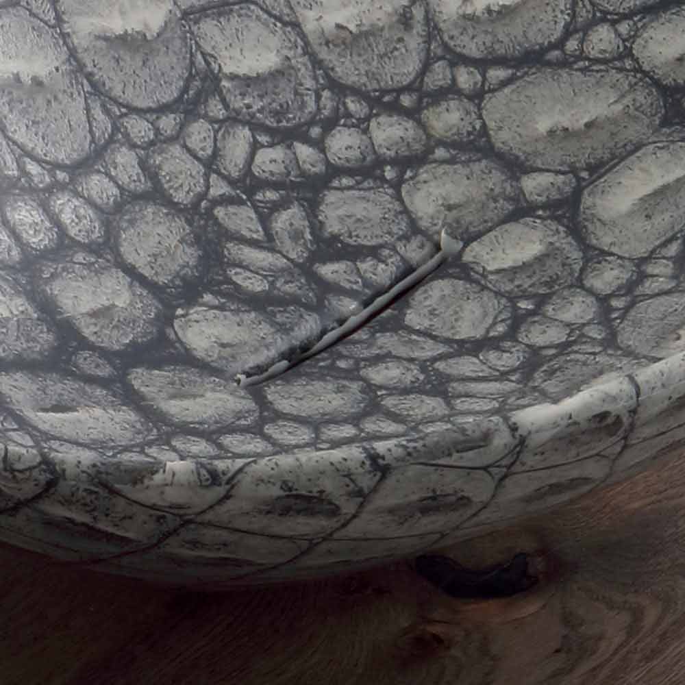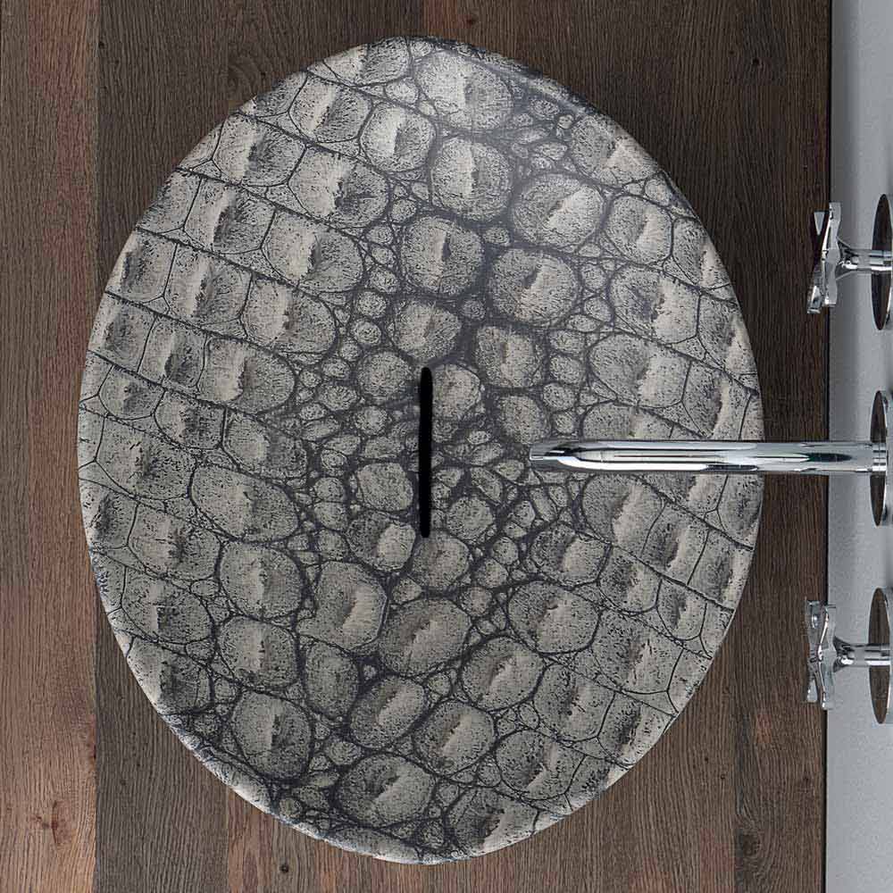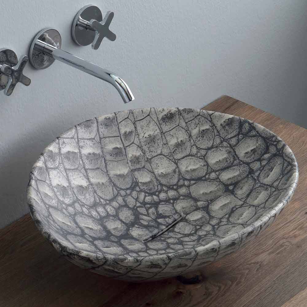 حوض غسيل سيراميك بتصميم جوز الهند مصنوع في إيطاليا - حيوانات الحيوانات عبارة عن حوض غسيل سيراميكي غير منتظم الشكل مع تصريف مستمر للمياه. يذكّرنا ملمسه النهائي بجلد الكيمان.