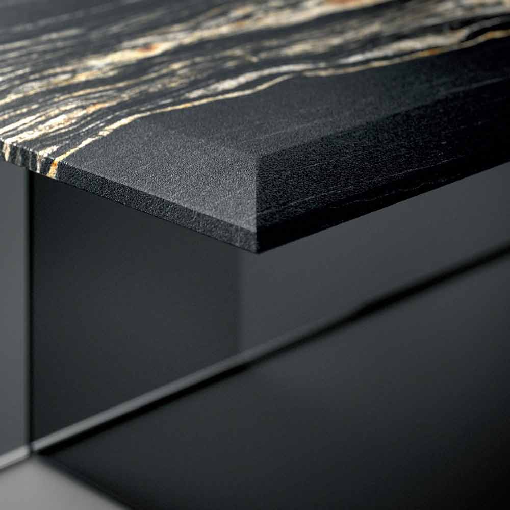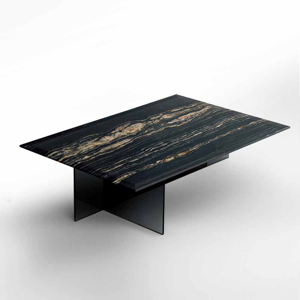 طاولة قهوة من الرخام المشطوف مع قاعدة زجاجية بتصميم صنع في إيطاليا.