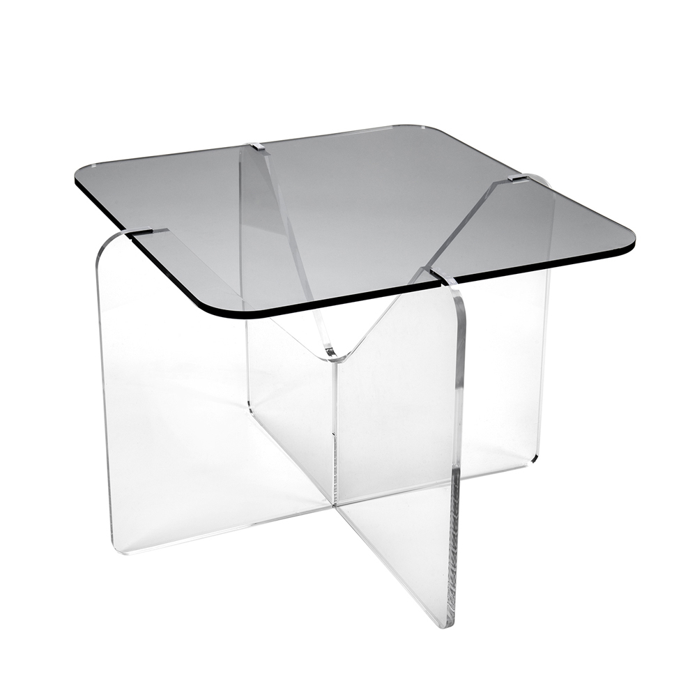 طاولة قهوة مصنوعة من زجاج شبكي شفاف أو ذات سطح مدخن، بتصميم مربع، مصنوعة في إيطاليا.