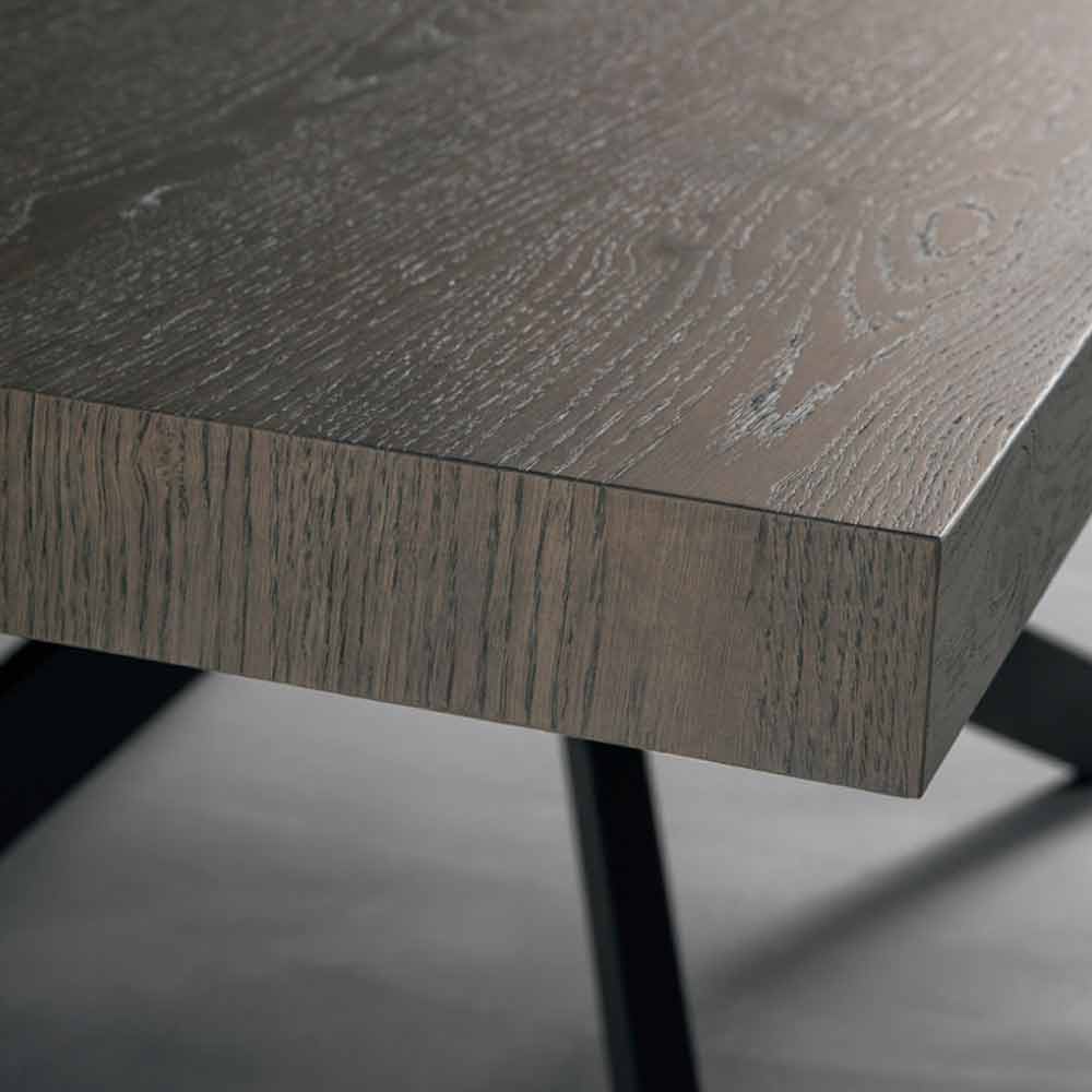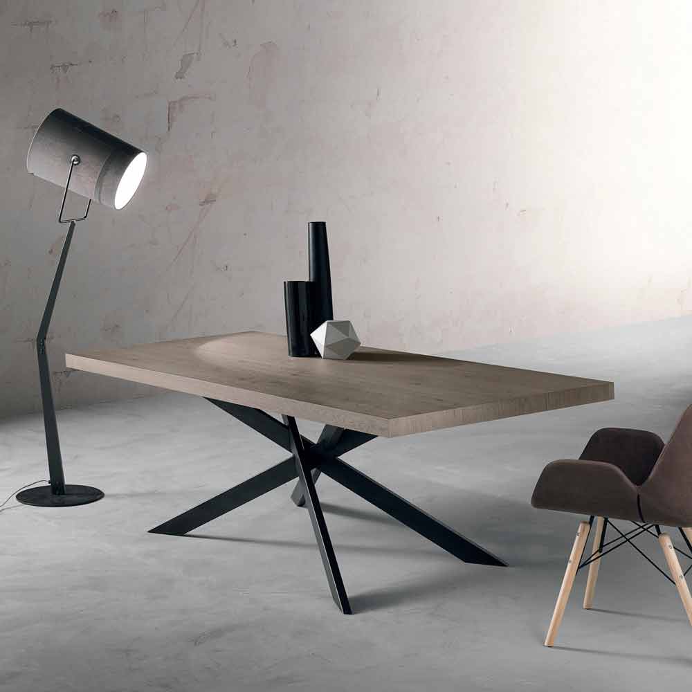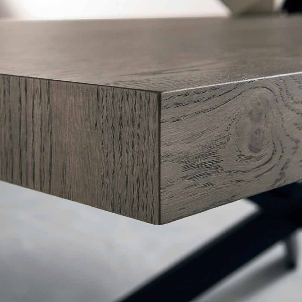 تم إنتاجها حصريًا في إيطاليا باستخدام مواد من العلامة التجارية المصنوعة في إيطاليا. الجزء العلوي مصنوع من خشب البلوط المعقود الذي تم الحصول عليه بعملية الطي، بسمك 60 ملم. يتكون الهيكل من معدن مطلي باللون الأنثراسيتي منقوش بدقة مع أنابيب متقاطعة وأقدام قابلة للتعديل.