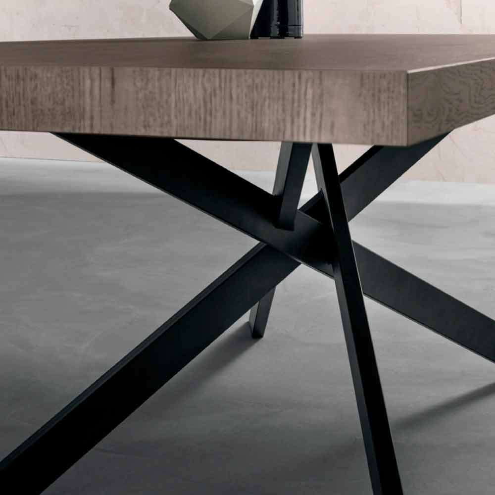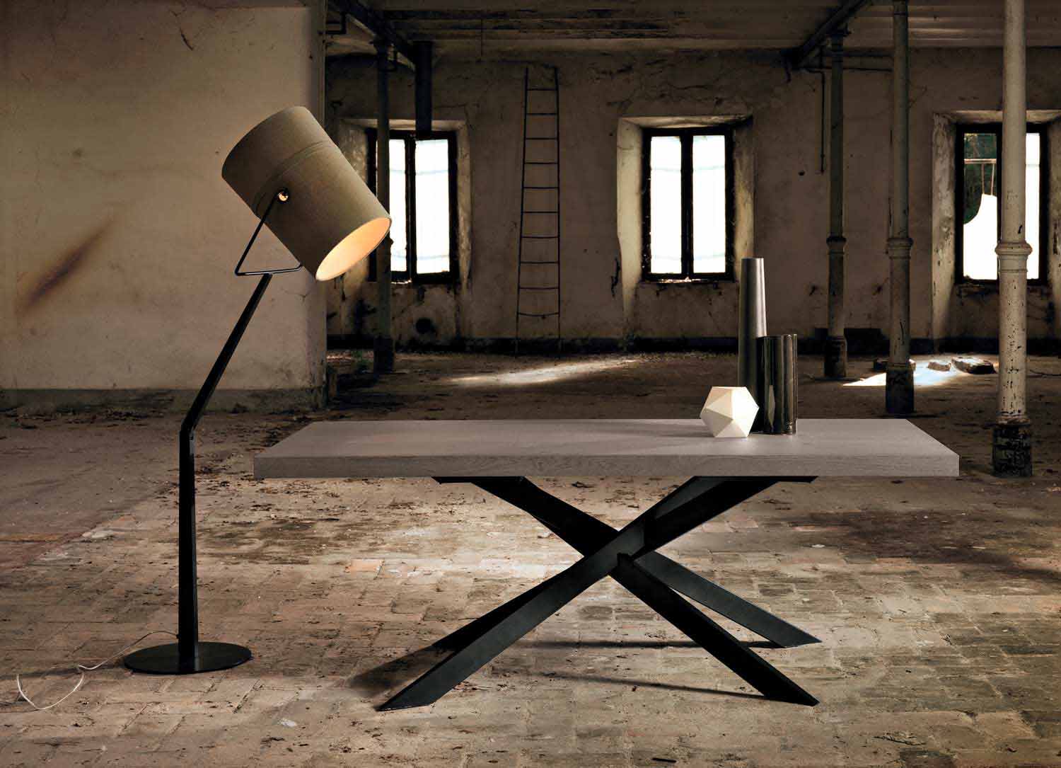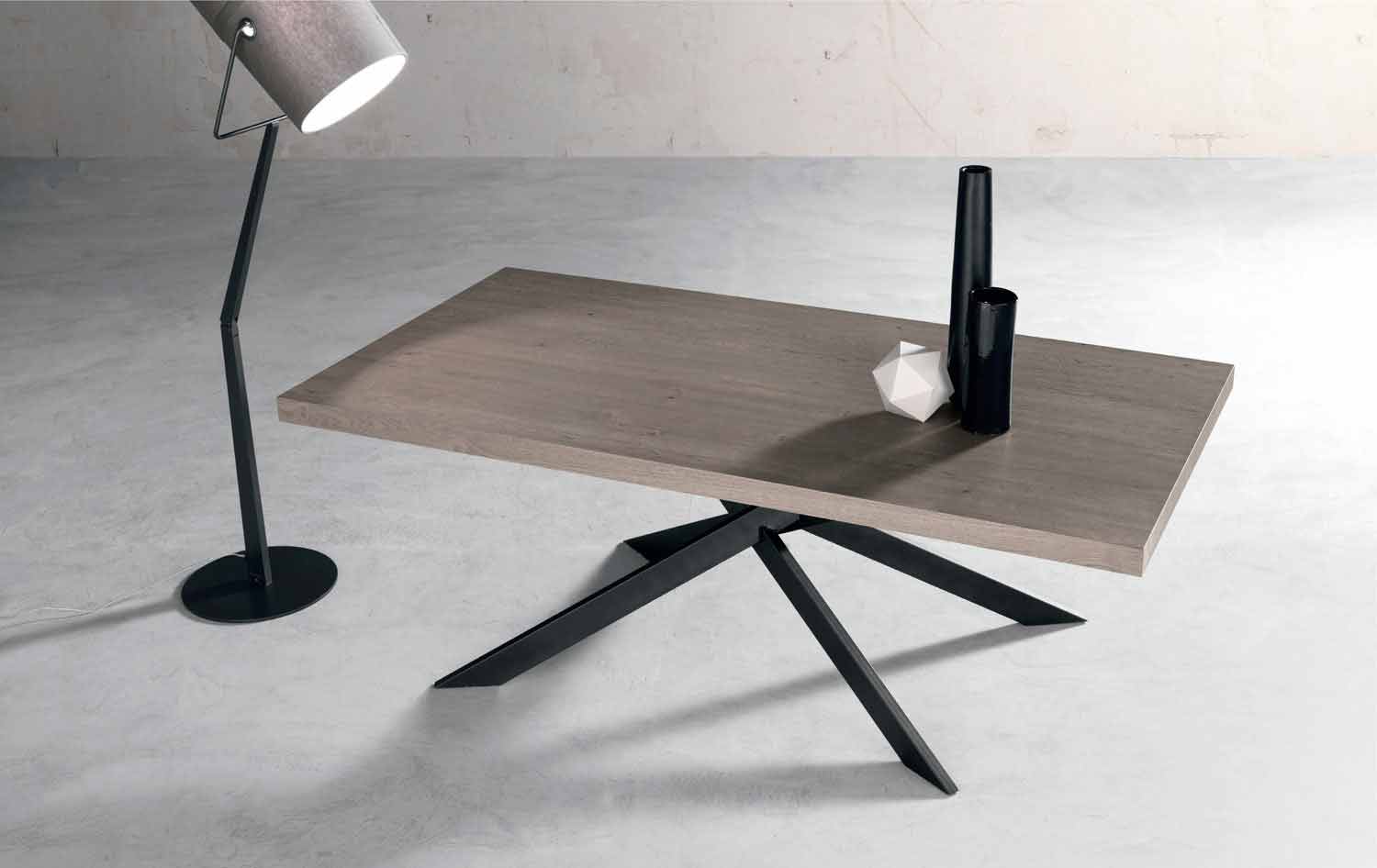 تم إنتاجها حصريًا في إيطاليا باستخدام مواد من العلامة التجارية المصنوعة في إيطاليا. الجزء العلوي مصنوع من خشب البلوط المعقود الذي تم الحصول عليه بعملية الطي، بسمك 60 ملم. يتكون الهيكل من معدن مطلي باللون الأنثراسيتي منقوش بدقة مع أنابيب متقاطعة وأقدام قابلة للتعديل.