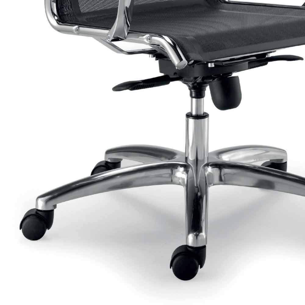 يتميز بآلية تذبذب مزودة بمحور ارتكاز ثنائي الذراع من الفولاذ المضغوط، مع أربعة أوضاع قفل، ونظام أمان لمسند الظهر مضاد للصدمات، وضبط شد الزنبرك لمعايرة التأرجح بواسطة مقبض. ويزداد جماله بفضل مساند الأذرع المصنوعة من الألومنيوم المطلي بالكروم، والقاعدة خماسية النجوم المصنوعة من الألومنيوم المصقول، وعجلات بقطر 50 مم مزودة بمكابح.