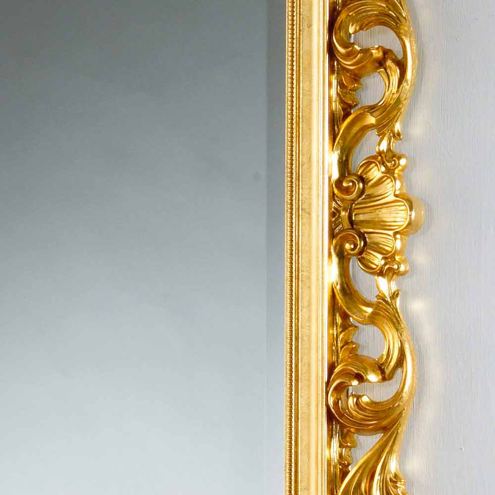 مرآة أرضية/حائط بتصميم مميز مع لمسة نهائية من ورق الذهب من ماتا تتميز مرآة ماتا بصناعة يدوية متقنة باستخدام مواد عالية الجودة وخبرة حرفيين إيطاليين مهرة. الإطار مصنوع من الخشب المزخرف بنقوش بارزة. مطلي بطبقة من ورق الذهب. مرآة كريستالية مشطوفة بسمك 4 مم. صنع في إيطاليا.