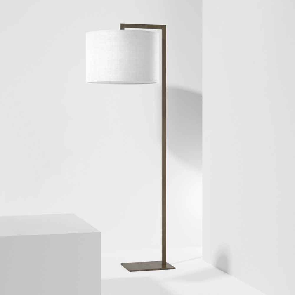 مصباح أرضي بتصميم هيكل معدني وغطاء مصباح من الكتان الأبيض صنع في إيطاليا.