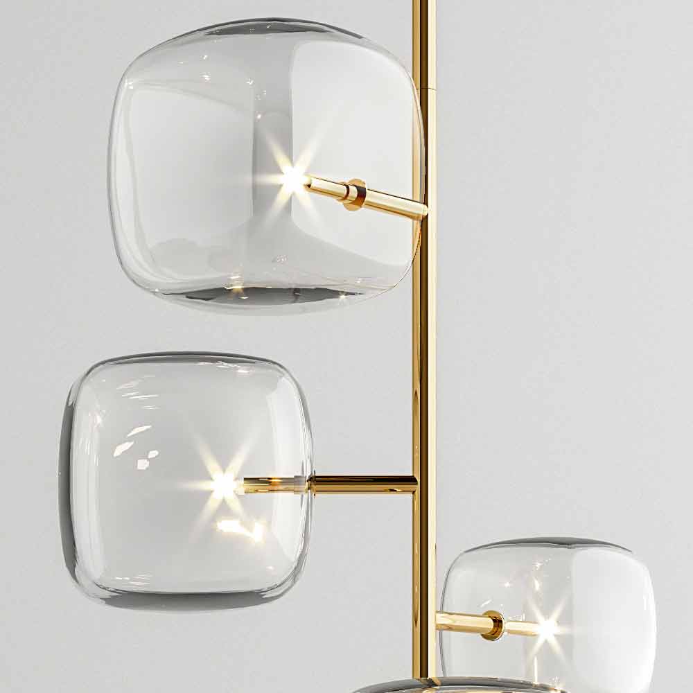مصباح أرضي بتصميم معدني مصقول مع مكعبات زجاجية مستديرة صنع في إيطاليا.