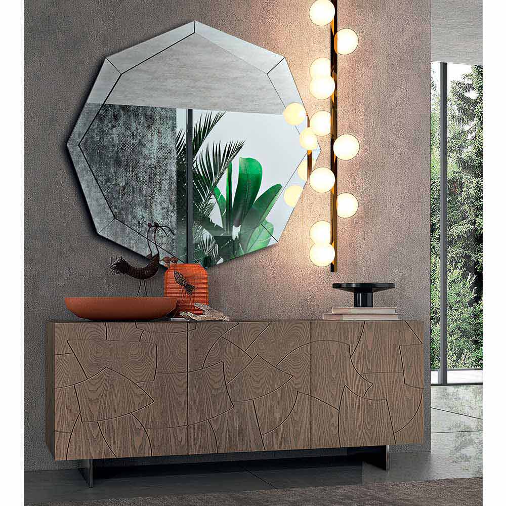 مرآة حائط حديثة بلمسة نهائية من الكريستال المرآة، صنعت في إيطاليا.