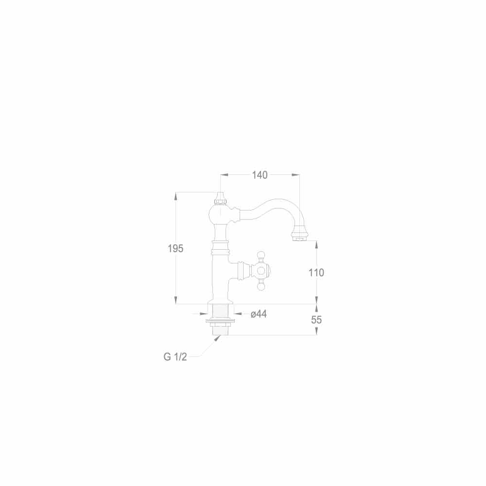 حنفية حوض مطبخ أحادية الماء، مصنوعة من النحاس المطلي بالكروم. صُنعت بالكامل في إيطاليا بمواد عالية الجودة مطابقة للمعايير الأوروبية. يُمكن تركيب هذا الخلاط في الأعلى، وهو مزود بمهوية ورأس سيراميك بزاوية 180 درجة. يُنصح به لنظام توفير الطاقة الذي يوفر 6 لترات/دقيقة من المياه، بالإضافة إلى فوهة دوارة.