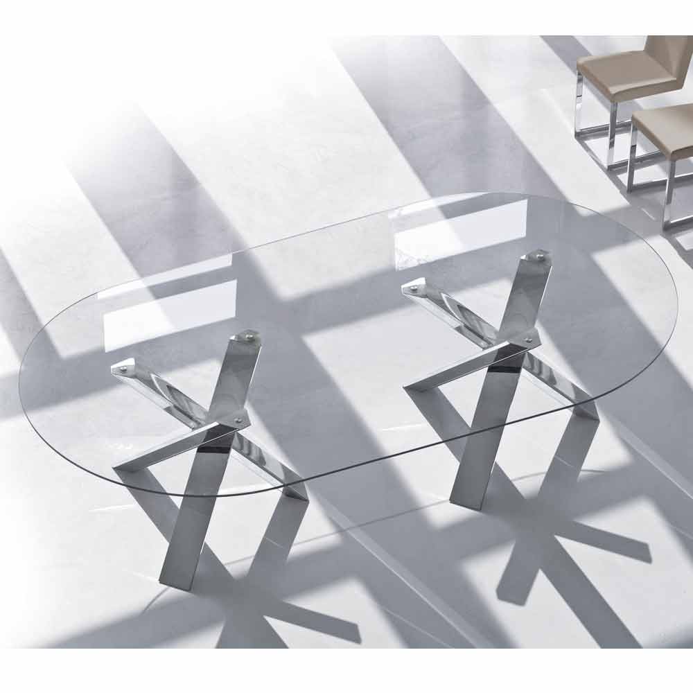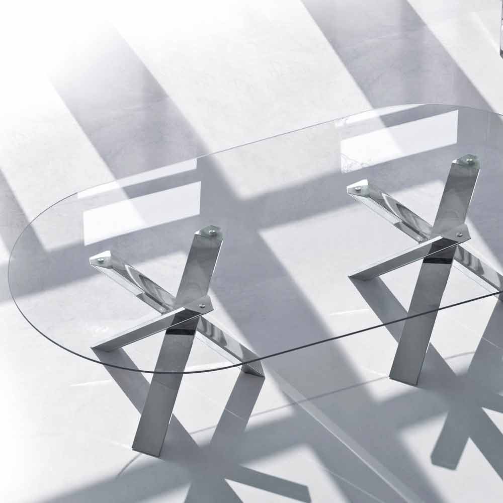 طاولة بيضاوية بتصميم كريستالي 280×120 سم، صنع في إيطاليا، شجرة الشفافية وانعكاسات الضوء هي الكلمات التي تتبادر إلى الذهن عند النظر إلى هذه الطاولة ذات التصميم الحصري، والتي تم تصنيعها بشكل فريد من خلال عملية عمل مصنوعة بالكامل في إيطاليا. يتكون هيكل الشجرة من قاعدتين، كل قاعدة مكونة من ثلاثة ألواح، والتي تم توازنها بشكل أنيق ولطيف. يتكامل تصميم هذه الطاولة بنجاح بين الفن الحرفي وفائدة طاولة الطعام.