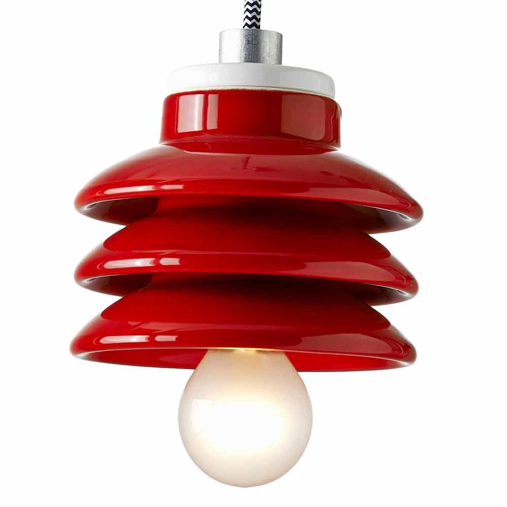 مصباح سيراميكي معلق باللون الأحمر مصنوع في إيطاليا بتصميم آسيوي آسيا هو مصباح تعليق رائع تم تصميمه وصنعه في إيطاليا من قبل حرفيين مهرة باستخدام مواد عالية الجودة. شكلها يذكرنا بعوازل الجهد العالي في الصناعات، وفي الواقع فهي تشير إلى حد كبير إلى الهندسة المعمارية الصناعية.