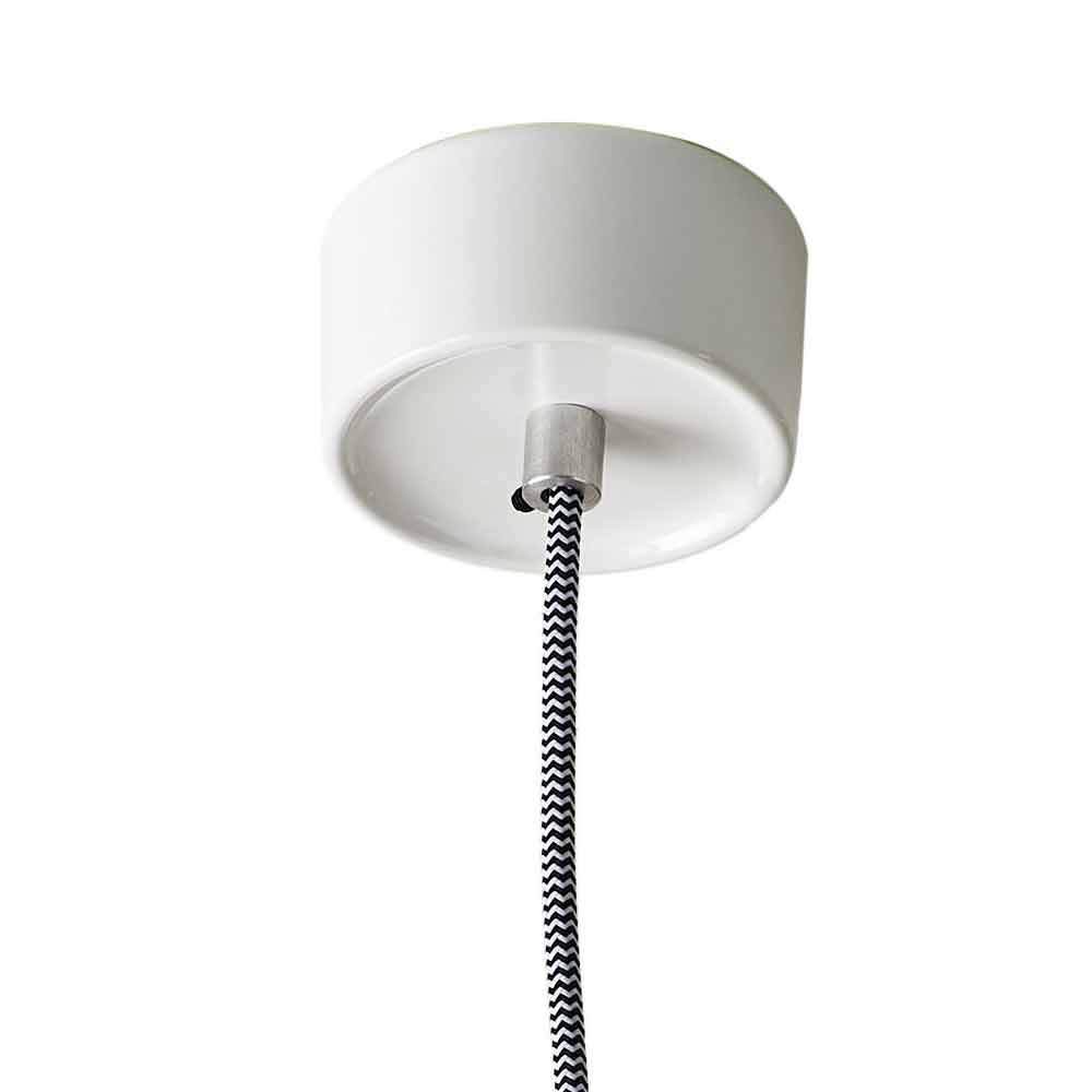 مكون من إطار سيراميكي أحمر مع كابل قماشي أسود وأبيض ومشبك كابل من الألومنيوم. مناسبة لتأثيث أي نوع من البيئات من المنزلية إلى التعاقدية.