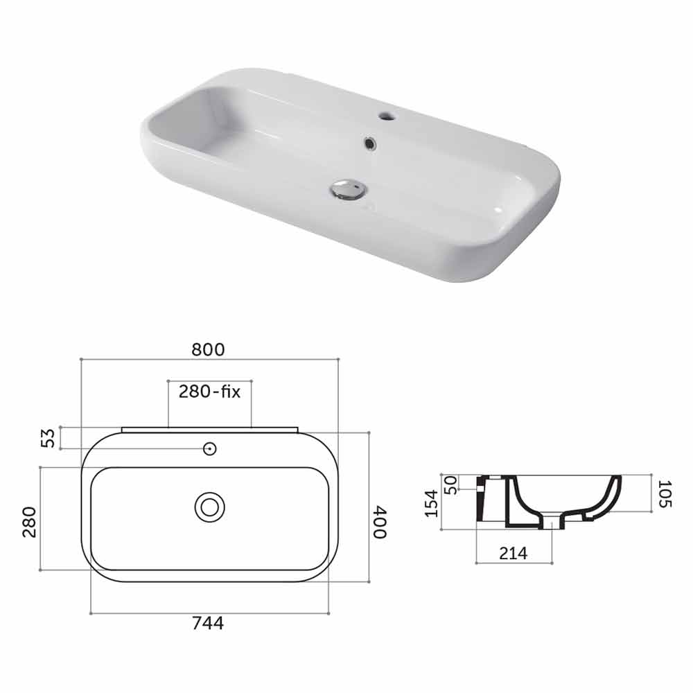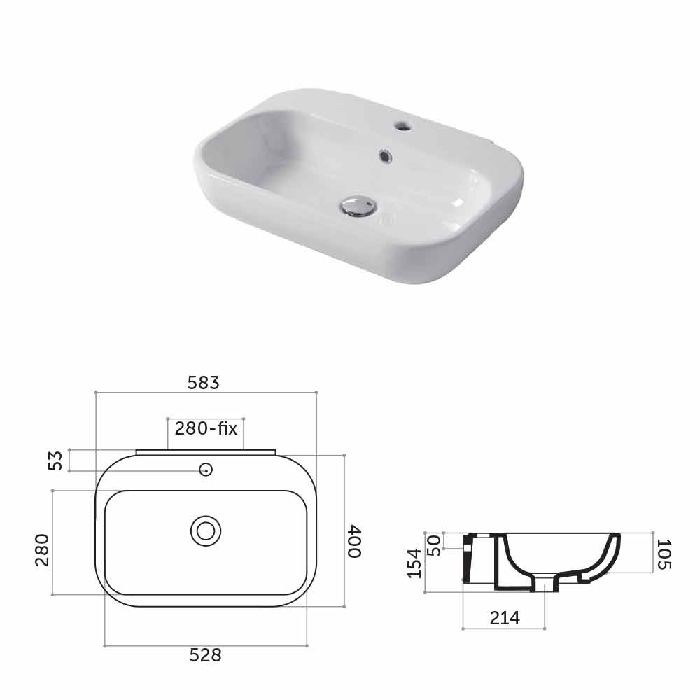 حوض غسيل سيراميك مثبت على سطح العمل والحائط: رياردو