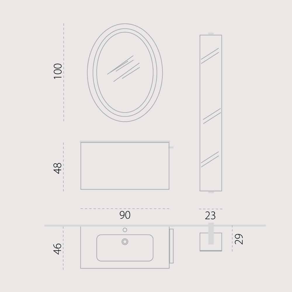 | الطول 90 × الطول 23 × الارتفاع 46.5 سم | مقاسات |