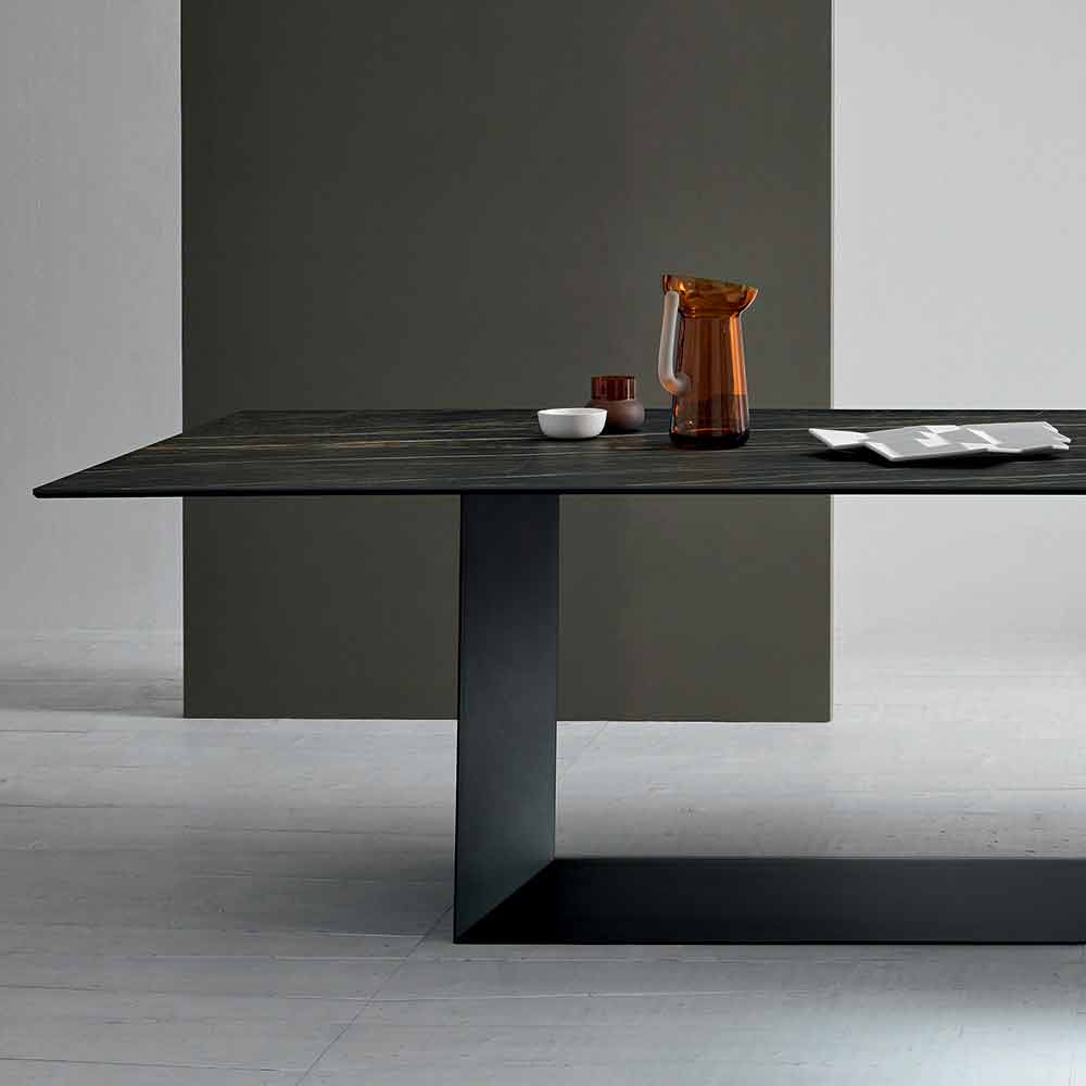 طاولة بتصميم معيشة من السيراميك غير اللامع من نوع Noir Desir وقاعدة من المعدن المطلي باللون الأسود الجرافيتي أو البرونزي المصقول، صنعت في إيطاليا.