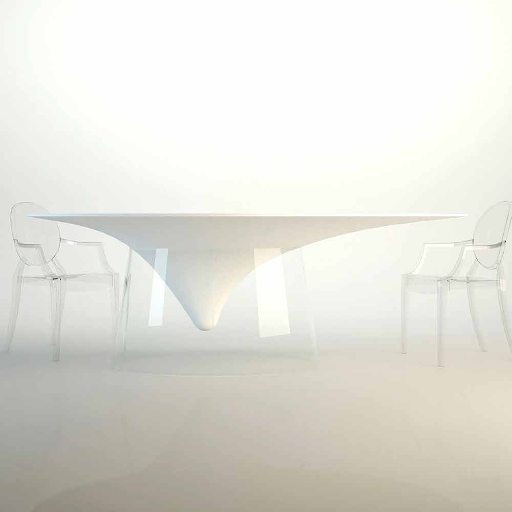 طاولة بتصميم عصري مع قاعدة كريستالية مصنوعة في إيطاليا، تيغيانو تيغيانو هي طاولة ذات تصميم حصري يشبه شكل زهرة الكالا. مصنوع من سطح بيضاوي الشكل من مادة Solid Surface® ينزلق داخل قاعدة بلورية شفافة تشبه المزهرية التي توضع فيها الزهرة. مناسب لأي بيئة منزلية أو تعاقدية، ويعطي إحساسًا بالانسجام والاسترخاء.