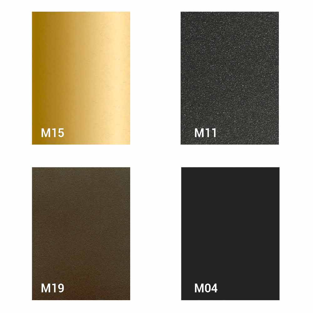 مصنوعة يدويًا في إيطاليا بمواد عالية الجودة ومصنوعة بنسبة 100% في إيطاليا. يتميز بجزء علوي خشبي (سمكه 12 سم) وقاعدة معدنية مطلية: ذهبي لامع، أو جرافيت منقوش، أو برونزي منقوش أو أسود غير لامع.