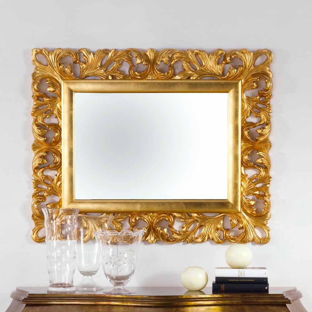 مرآة حائط بتصميم غودين بلمسة نهائية من ورق الذهب، 108×87 سم تتميز مرآة جودين بصناعة يدوية متقنة باستخدام مواد عالية الجودة وخبرة حرفيين إيطاليين مهرة. الإطار مصنوع من الخشب المزخرف بنقوش بارزة. مطلي بورق الذهب. مرآة كريستالية، سمكها 4 مم. صنعت في إيطاليا. قابلة للتعليق أفقيًا ورأسيًا.