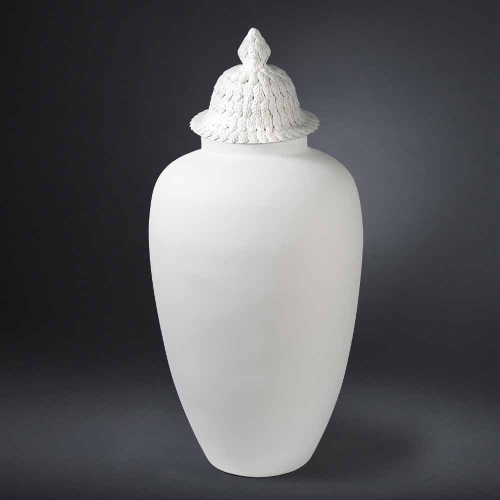 مزهرية زخرفية طويلة من السيراميك الأبيض مصنوعة يدويًا في إيطاليا، عالية الجودة.