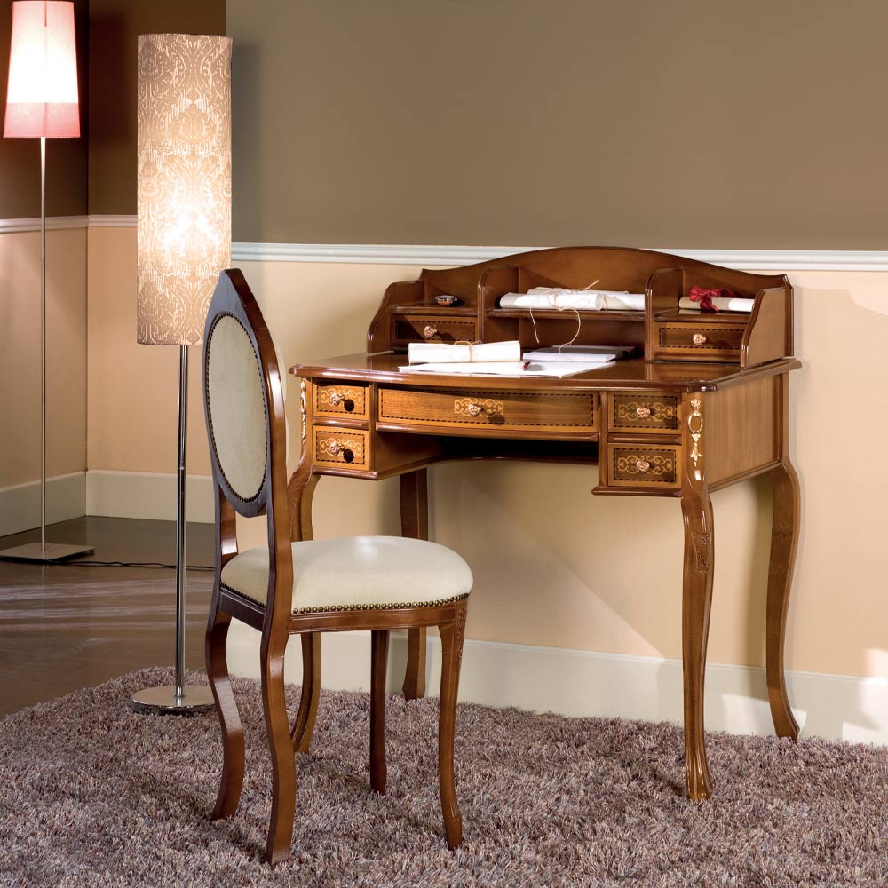 مكتب من خشب الجوز مكون من 7 أدراج مع تطعيمات مصنوعة في إيطاليا.