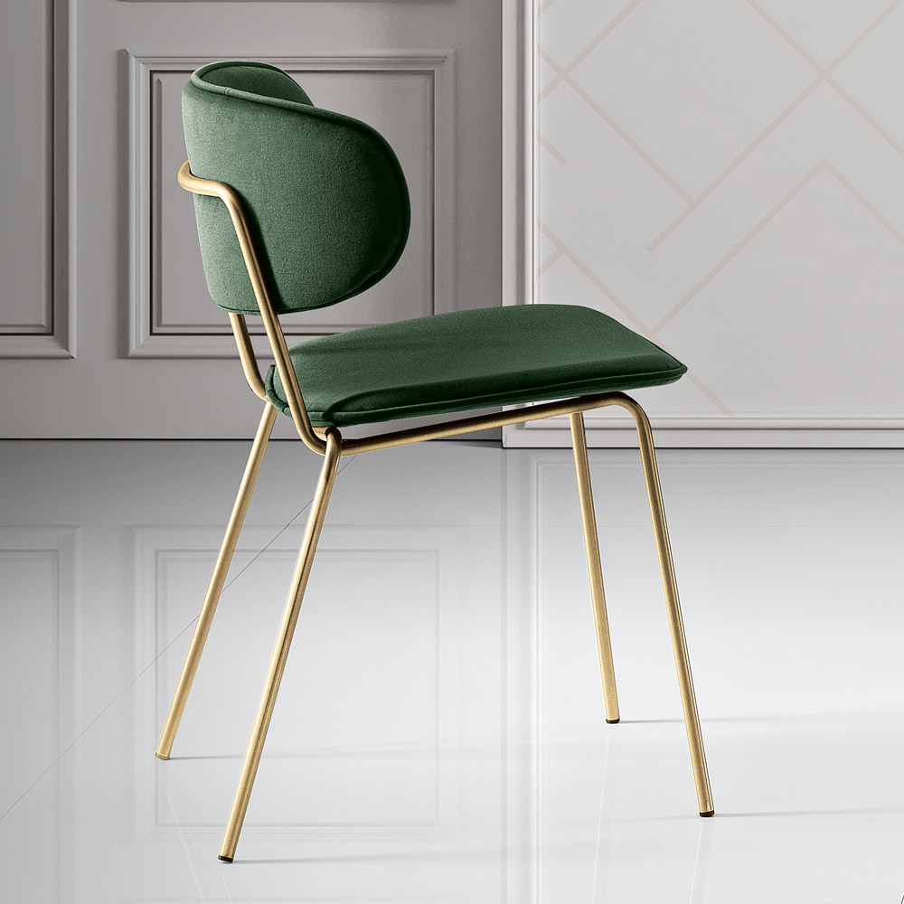 هذا الكرسي جوهرة تصميمية، مثالي لمن يبحثون عن الجمع بين العملية والأناقة. المقعد ومسند الظهر المنحني مغطيان بقماش، مما يوفر تجربة جلوس مريحة وأنيقة. تصميم الكرسي البسيط والأنيق يُبرزه أرجل معدنية ، مما يضفي لمسة من الدفء العصري وشعورًا بالخفة البصرية.