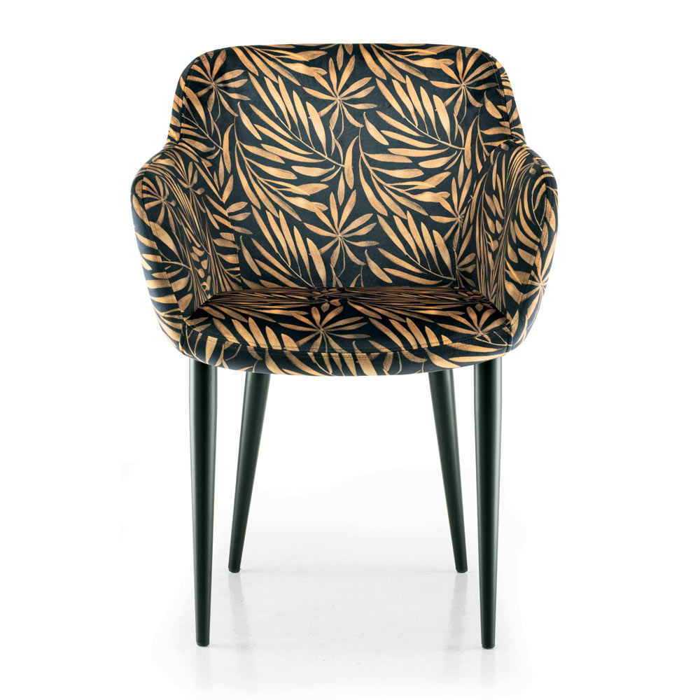 كرسي طعام مصنوع في إيطاليا ، مغطى بالكامل بالقماش، بأرجل فولاذية مطلية باللون الأسود . تصميم فخم وراقي ، يتناسب تمامًا مع البيئات العصرية، حيث يُصبح محور الاهتمام بفضل طابعه العصري القوي . يُتيح المزيج المثالي بين لمسة الفولاذ العصرية والمظهر الأصلي للقماش وملمسه، ابتكار حل أثاث حصري، مثالي لمن يبحثون عن العملية والتصميم في منتج واحد. يتميز المقعد بخطوط وأشكال ناعمة وجذابة تضمن راحة فائقة، بالإضافة إلى لمسة جمالية أصلية وعصرية .