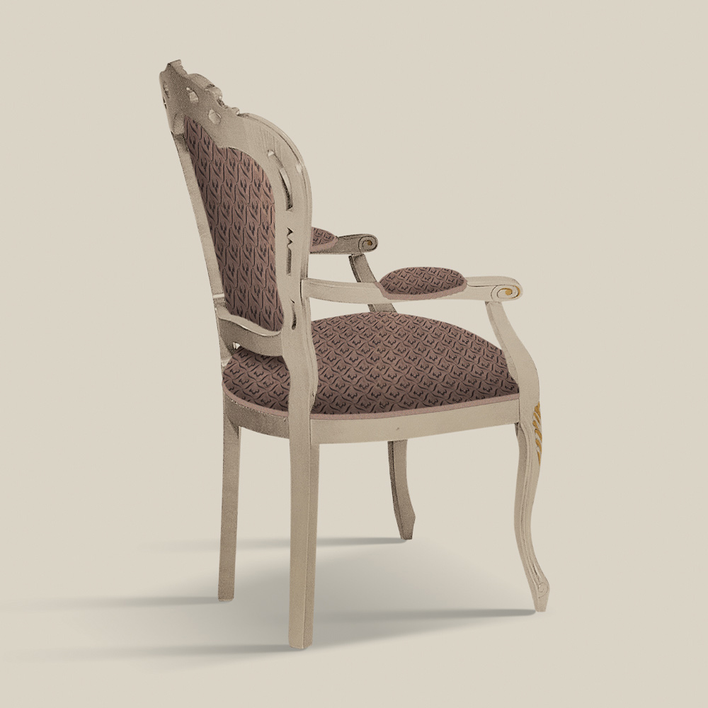 كرسي طعام كلاسيكي مصنوع من خشب فاخر بلمسة نهائية بيضاء وبطانة قماشية ، متوفر بإصدارين: مع أو بدون مساند للذراعين. يتجلى في هذا الأثاث الفاخر كل الأناقة والحرفية التي تميز الصنعة، مما يجعله قطعة أثاث راقية تُضفي جمالاً على المكان الذي يوضع فيه. مصنوع بالكامل في إيطاليا ، ومُصنّع يدويًا علىيد حرفيين مهرة ، بإتقان وذوق رفيع. يُصنع باستخدام أجود الخامات ، ويُنجز العمليدويًا بأقصى درجات العناية والاحترافية التي تميز المنتجات المصنوعة في إيطاليا .