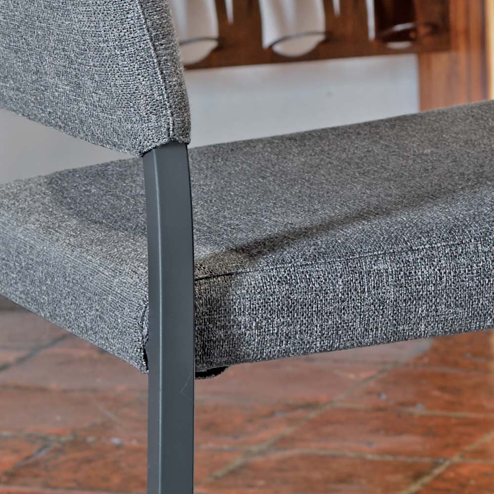 كرسي طعام مصنوع بالكامل في إيطاليا ، مع هيكل مطلي باللون الأنثراسيت غير اللامع ، مع ساق مربعة مقاس 20 × 20 مم، ومقعد ومسند ظهر مغطى بقماش رمادي مضاد للبكتيريا ومقاوم للماء. قابلة للتكديس والإزالة كمعيار، ومتوفرة أيضًا بمسند ظهر منخفض (ارتفاع 85 سم) كرسي بتصميم عصري، بتشطيبات بسيطة وخطية، ولكنه في نفس الوقت قادر على تأثيث غرف المعيشة وغرف الطعام والمطابخ بالذوق والأناقة دون التضحية بالوظيفة والراحة.
