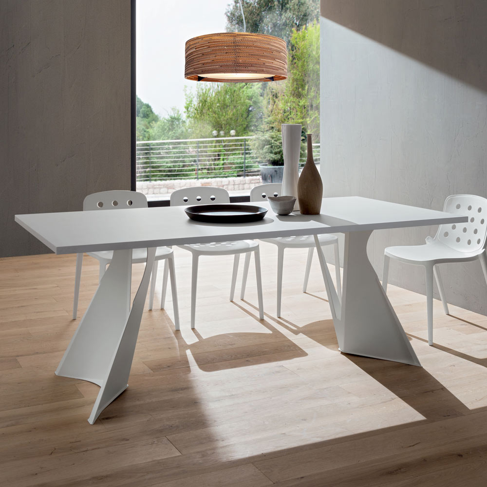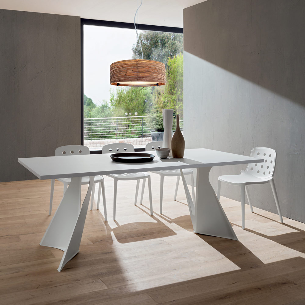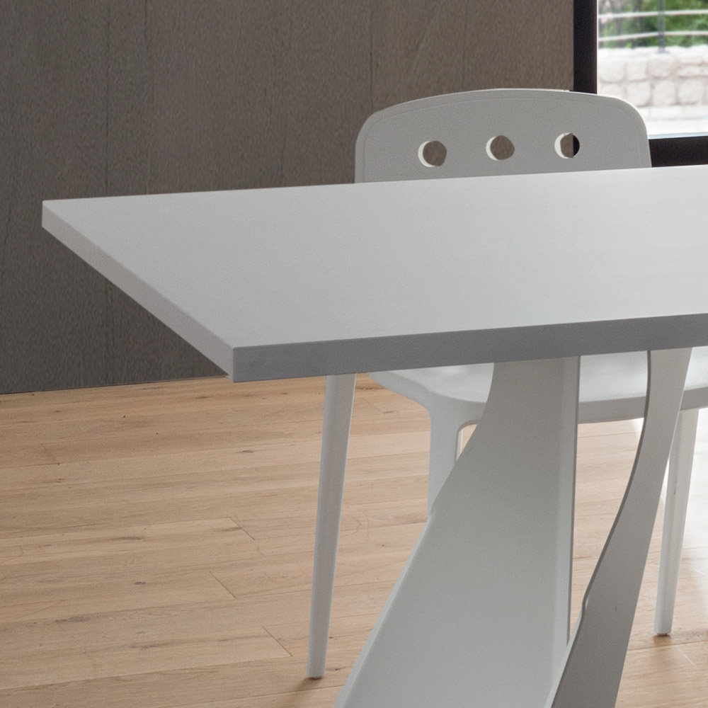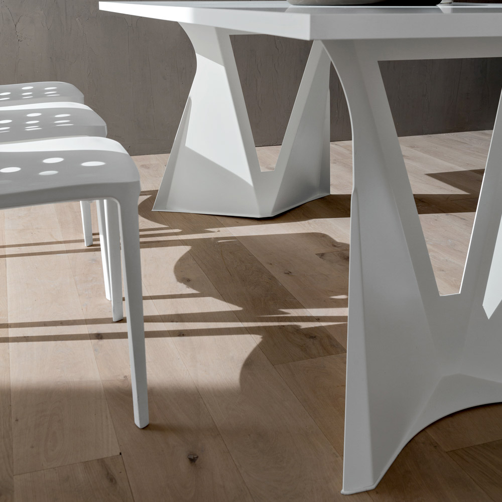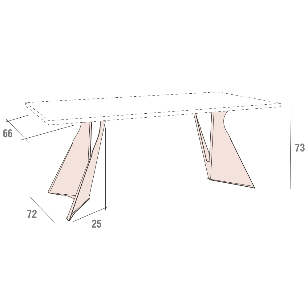 طاولة طعام بسطح من الفينيكس (سمك 30 مم) وقاعدة معدنية مطلية بنفس لون السطح. استخدام الفينيكس في صناعة السطح يمنح الطاولة جميع وظائفها، فهو مادة تضمن، من خلال استخدام الراتنجات المبتكرة ، سطحًا متينًا، لطيف الملمس، ومعتمًا للغاية ، مما يُحسّن النتيجة النهائية ويضفي حيوية على تصميمها المهيب والرائع . تُثري هذه الخاصية جمالها، إلى جانب الشكل غير التقليدي للساقين، مما يمنح الطاولة مظهرًا مستقبليًا، مما يجعلها مناسبة بشكل خاص لمن يحبون تزيين غرفهم وإثراءها بعناصر ذات سمات فريدة وراقية . علاوة على ذلك، بفضل الفروق الدقيقة والرصينة، تُثبت أنها حل متعدد الاستخدامات للغاية، قادر على إحداث ثورة في تأثيث أي مساحة معيشة بأسلوب عصري، ويضيف إليها لمسة حصرية .