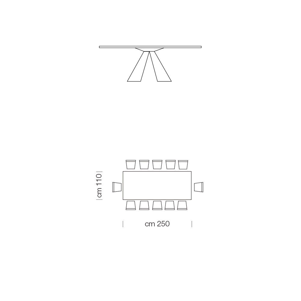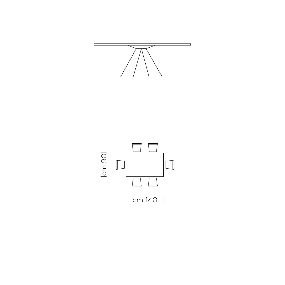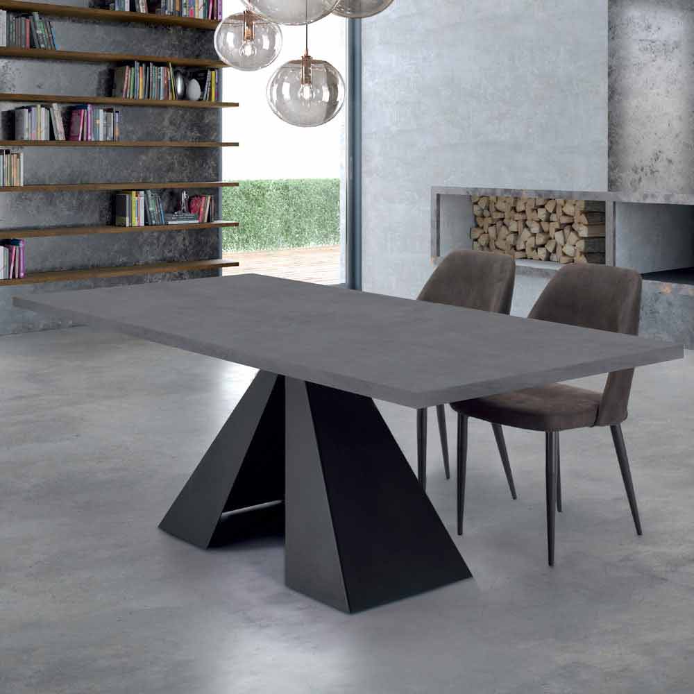 طاولة طعام عالية الجودة مصنوعة في إيطاليا من صفائح HPL والفولاذ المطلي.