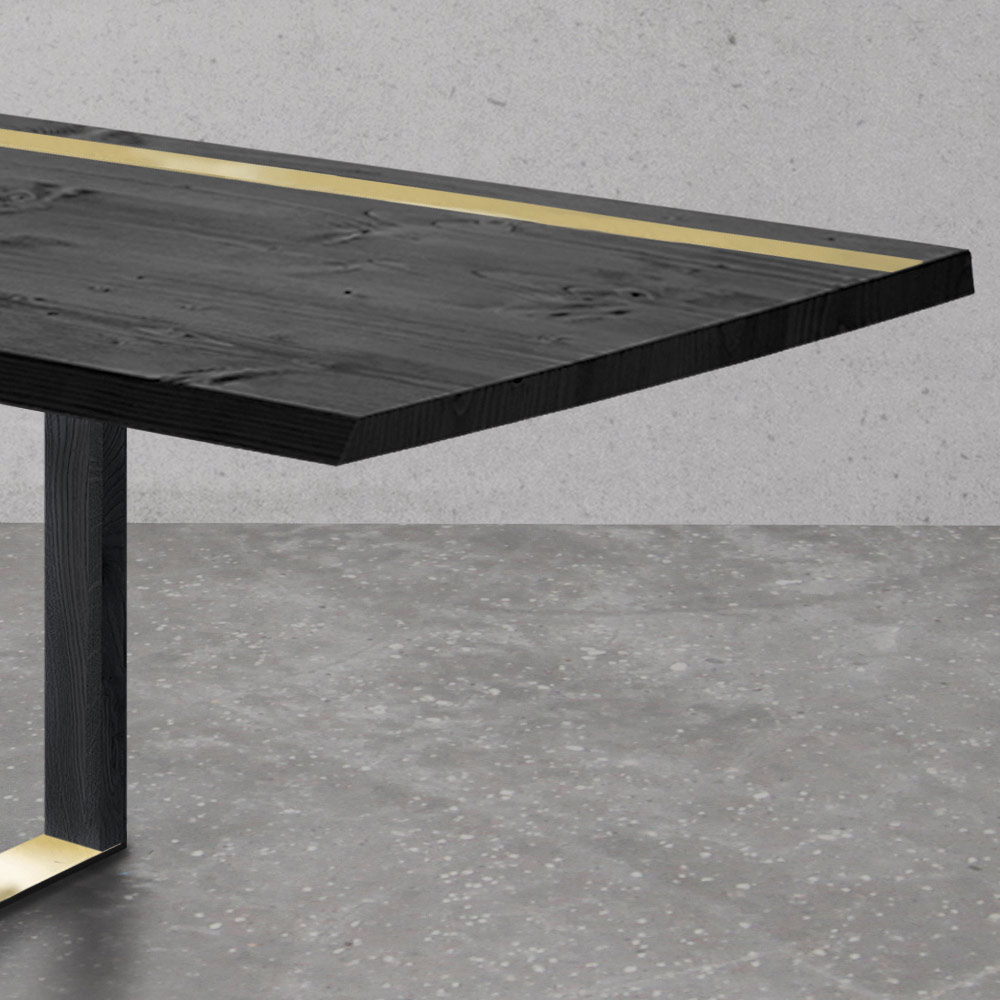 طاولة مصنوعة من خشب البلوط المعقود مع سطح وقاعدة مزينة بأجزاء معدنية صنع في إيطاليا.