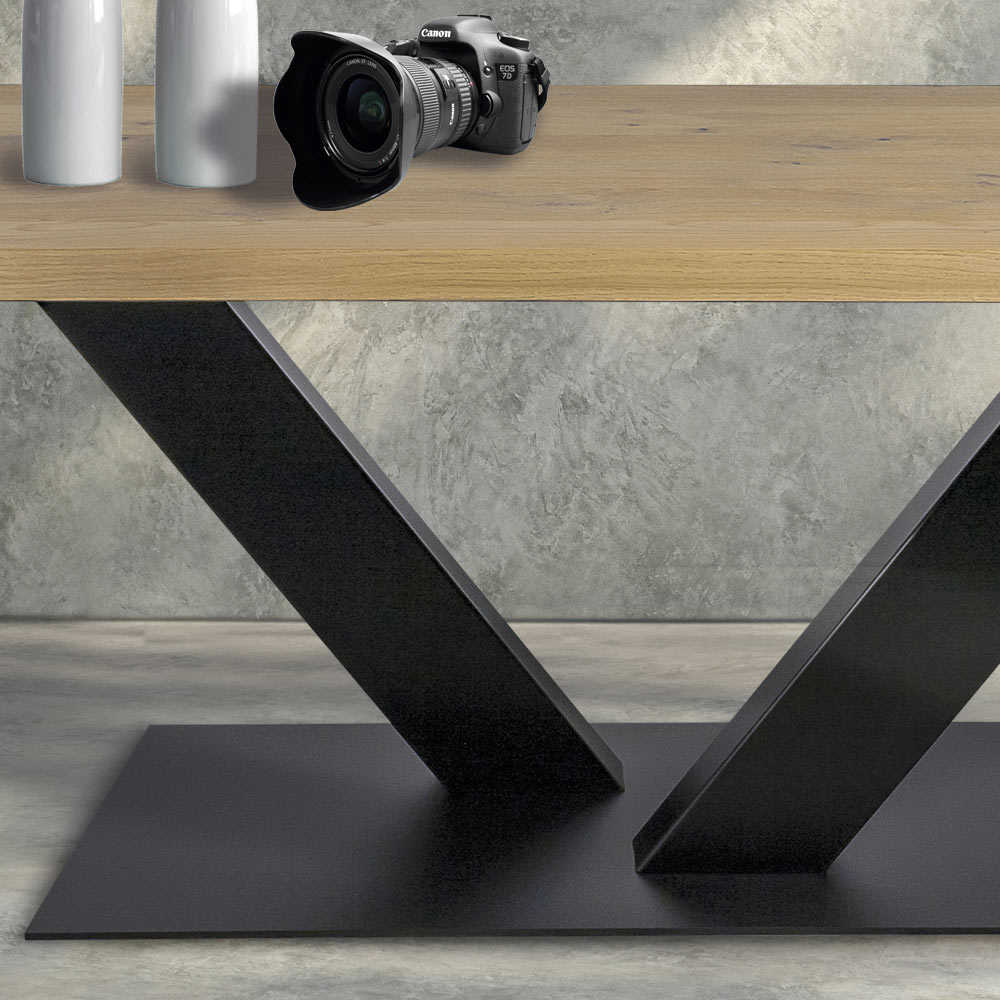 طاولة خشبية مطلية بقشرة من خشب البلوط المعقود وقاعدة معدنية صنع في إيطاليا.