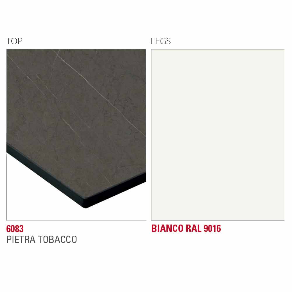 طاولة طعام بسطح من ألواح HPL مُرَكَّبة (سمك 10 مم) على شكل برميل، مُدعَّمة بلوح MDF وأرجل معدنية مطلية بمساحيق إيبوكسي باللون الأبيض. صُنعت هذه الطاولة في إيطاليا بمواد خام عالية الجودة ، وتتميز بمقاومة ممتازة للمواد الكيميائية والتآكل والخدوش، مع ضمان سطح متين وقوي يحافظ على خصائصه الجمالية. بالإضافة إلى ذلك، تُتيح مجموعة واسعة من التشطيبات، بدءًا من الخشب والحجر وصولًا إلى ملمس الرخام، تقديم حلول متنوعة تُلبي الأذواق والاحتياجات بأسلوب حصري وراقي. أما القاعدة المعدنية، فتُضفي لمسةً أصليةً وإبداعيةً ، وتُكمل مظهر الطاولة بلمسة عصرية.