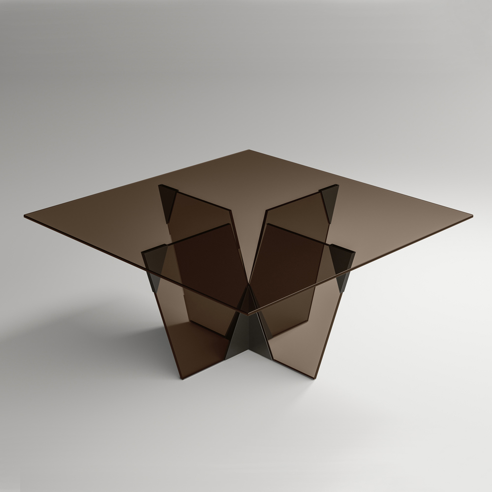 طاولة مطبخ عصرية ، مصنوعة بالكامل في إيطاليا، بسطح مربع وقاعدة زجاجية مزينة بتفاصيل معدنية. قطعة أثاث تتميز بتصميم أنيق ونحتي ، يجمع بين مواد متنوعة وشغف معالجة الزجاج، مما يُبرز القوة والشخصية من خلال أشكالها وسماكاتها المتنوعة. تكمن نقطة قوة هذه الطاولة الجمالية في قاعدتها المعمارية، التي تتميز بمفصل هرمي مصنوع من المعدن، وهو الجزء الأساسي من المنتج. تُكمل العناصر المعدنية تصميم الطاولة، مُضفيةً شكلًا مميزًا على قاعدة الزجاج، ومُضفيةً عليها طابعًا مميزًا وأصالة.