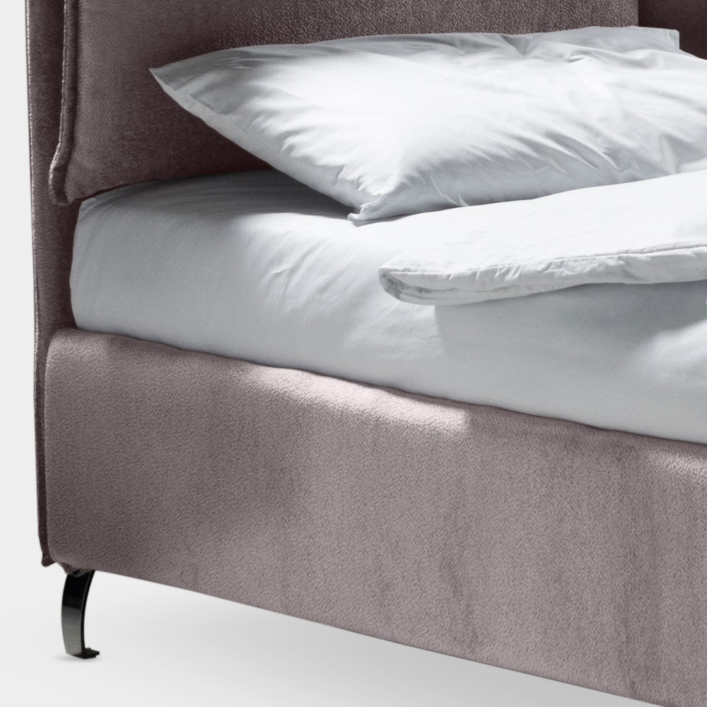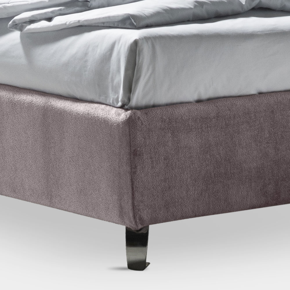 سرير مزدوج مع قاعدة ديناميكيةوصندوق تخزينوأقدام معدنية بلمسة نهائية من الفولاذ المصقول (ارتفاع 12 سم) ولوح أمامي من القماش المقاوم للحريق، مصنوع من وسادتين ناعمتين مع كشكشة محيطية مثبتة بإدخالات فيلكرو لاصقة عملية تسمح بإزالتها بسهولة وراحة. هذا السرير هو مثالٌ للراحة والتصميم العصري. إنه مزيجٌ مثاليٌّ من الأناقةوالعملية ، مصممٌ ليمنحك ليالي من الاسترخاء التام وأناقةٍ لا مثيل لها.