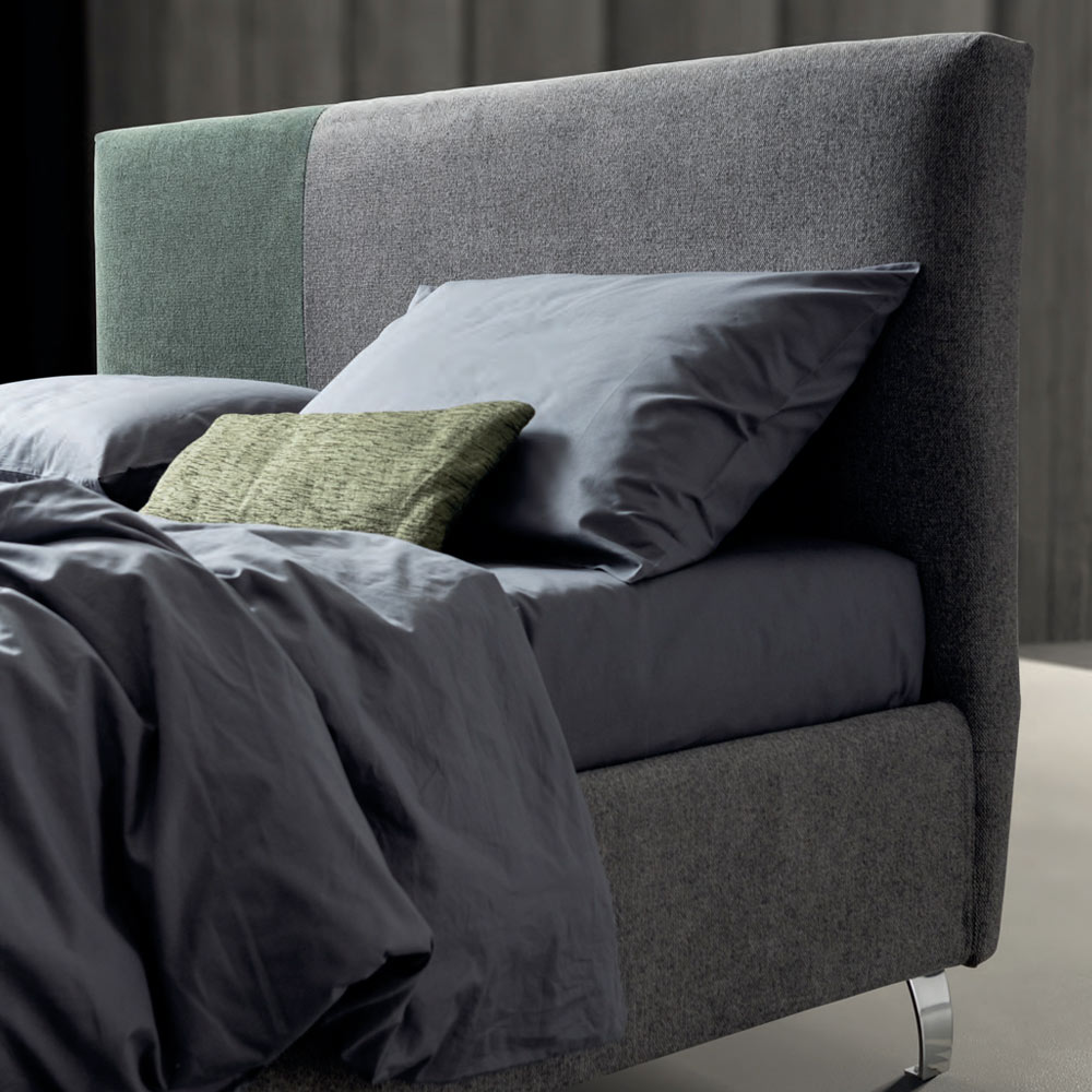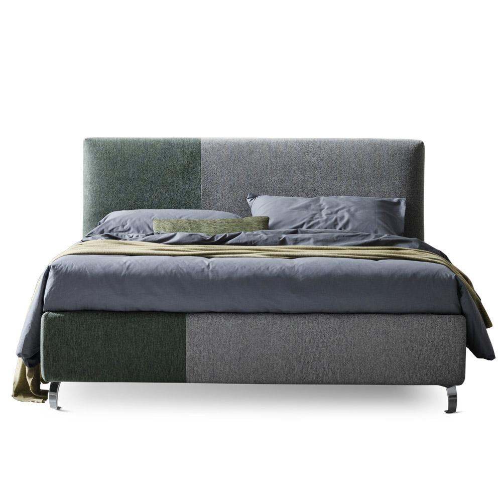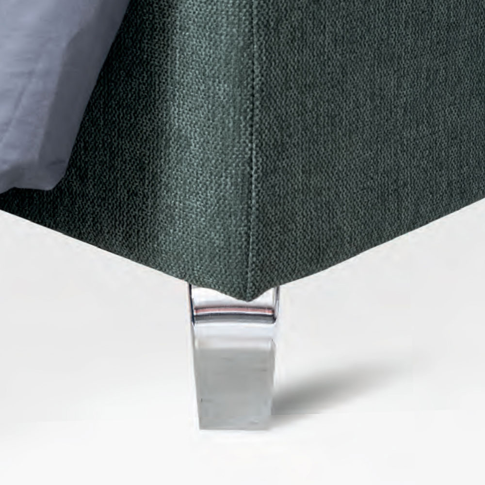 سرير مزدوج مغطى بقماش مقاوم للماء والبقع ثنائي اللون مع قاعدة ديناميكيةوصندوق تخزينوأقدام معدنية بلمسة نهائية من الفولاذ المصقول (ارتفاع 12 سم).