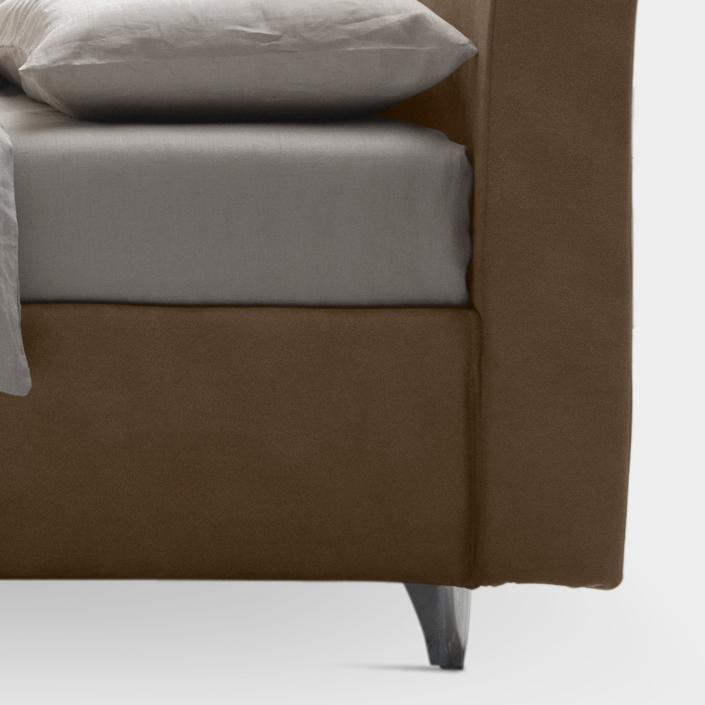 سرير مزدوج بقاعدة ديناميكية ، وصندوق تخزين،وأرجل معدنية بلمسة نهائية من الفولاذ المصقول (ارتفاع ١٠ سم)، ولوح رأس منحني بسماكة كبيرة، مما يجعله الخيار الأمثل للغرف الفسيحة والراقية. يُضفي التصميم المتقن، الذي يتميز بخياطة بارزة ومتباينة في وسط لوح الرأس، لمسةً من الأناقة على المنتج المصنوع من قماش مقاوم للبقع. هذا السرير هو مثالٌ للراحة والتصميم العصري. إنه مزيجٌ مثاليٌّ من الأناقةوالعملية ، مصممٌ ليمنحك ليالي من الاسترخاء التام وأناقةٍ لا مثيل لها.