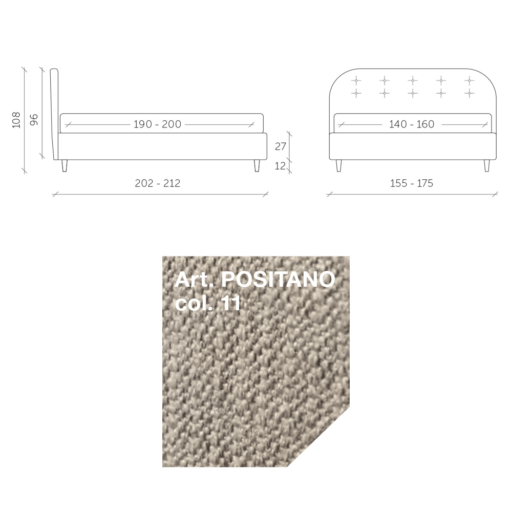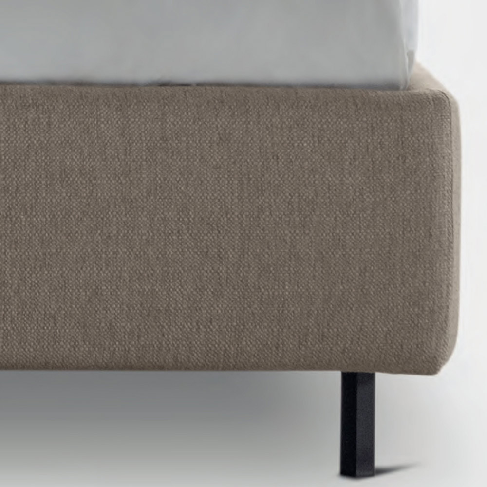 سرير مزدوج مغطى بقماش مقاوم للحريق مع شبكة ديناميكيةوصندوق تخزين وأقدام معدنية باللون الأسود (ارتفاع 12 سم). هذا السرير هو مثالٌ للراحة والتصميم العصري. إنه مزيجٌ مثاليٌّ من الأناقةوالعملية ، مصممٌ ليمنحك ليالي من الاسترخاء التام وأناقةٍ لا مثيل لها.