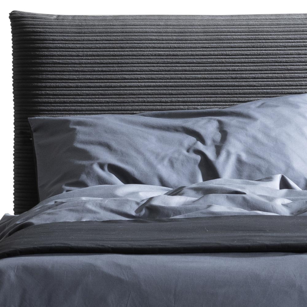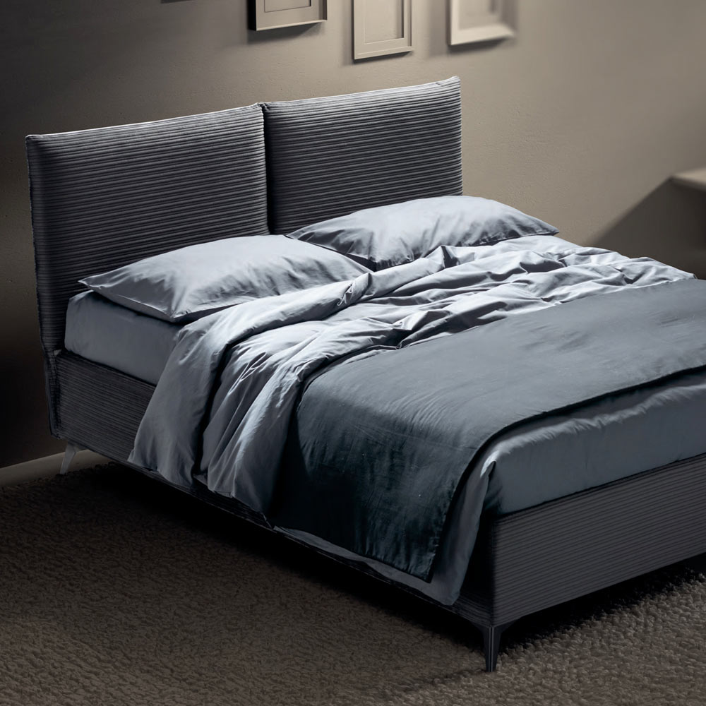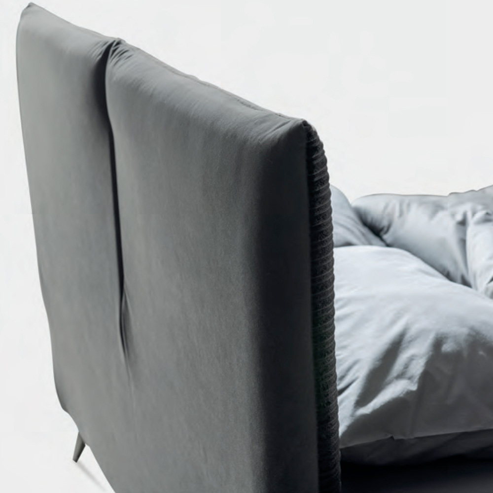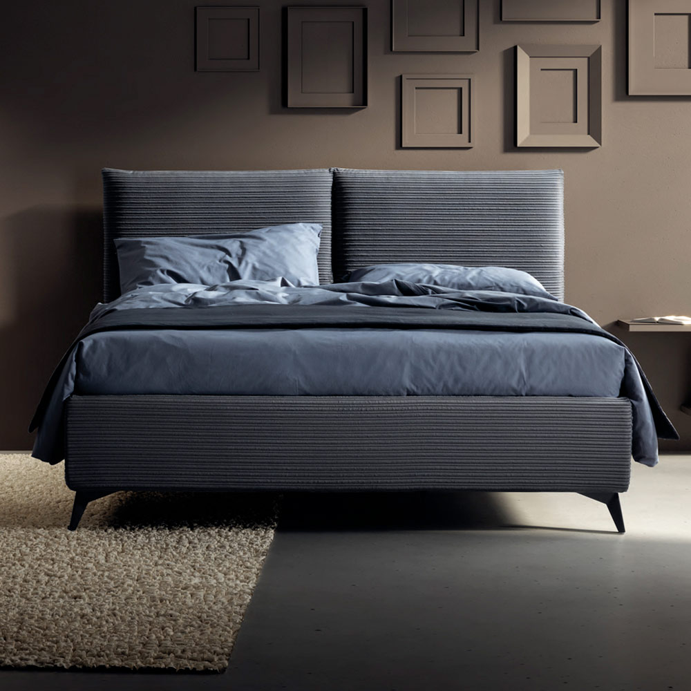سرير مزدوج مغطى بقماش صديق للبيئة وأخضر على الجزء الأمامي من لوح الرأسوقماش مقاوم للحريق على الجزء الخلفي من لوح الرأس وإطار السرير مع قاعدة ديناميكيةوصندوق تخزين وأقدام معدنية بلمسة نهائية من أنثراسايت (ارتفاع 13.5 سم) ولوح رأس ناعم تم الحصول عليه بفضل حشوة خاصة على شكل وسادة ؛ يمنح التقسيم المركزي للوح الرأس خطًا نظيفًا وممتعًا بشكل خاص مع تأثير جمالي أصلي. هذا السرير هو مثالٌ للراحة والتصميم العصري. إنه مزيجٌ مثاليٌّ من الرقيّوالعملية ، مُصمَّمٌ ليمنحك ليالي من الاسترخاء التامّ وأناقةٍ لا مثيل لها.