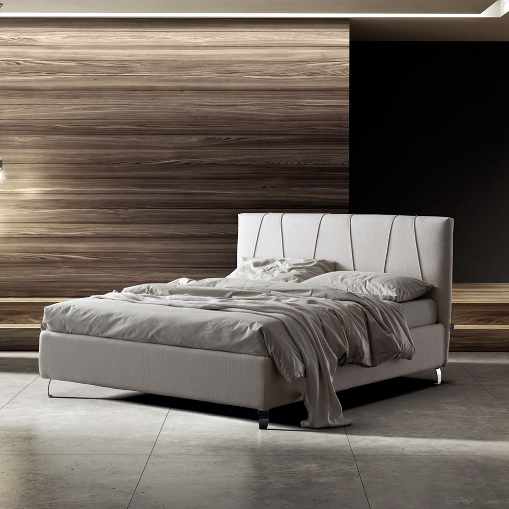 سرير مزدوج مع قاعدة ديناميكيةوصندوق تخزينوأقدام معدنية بلمسة نهائية من الفولاذ المصقول (ارتفاع 12 سم) ولوح أمامي من القماش المقاوم للحريق بخطوط نظيفة، مصنوع من مقاطع مائلة مائلة تميزه وتمنحه تأثيرًا جماليًا أصليًا. هذا السرير هو مثالٌ للراحة والتصميم العصري. إنه مزيجٌ مثاليٌّ من الأناقةوالعملية ، مصممٌ ليمنحك ليالي من الاسترخاء التام وأناقةٍ لا مثيل لها.