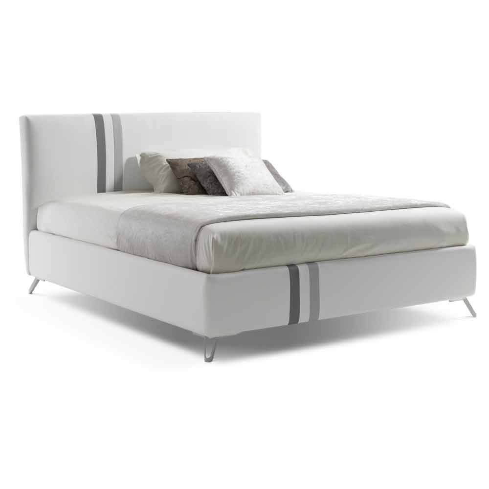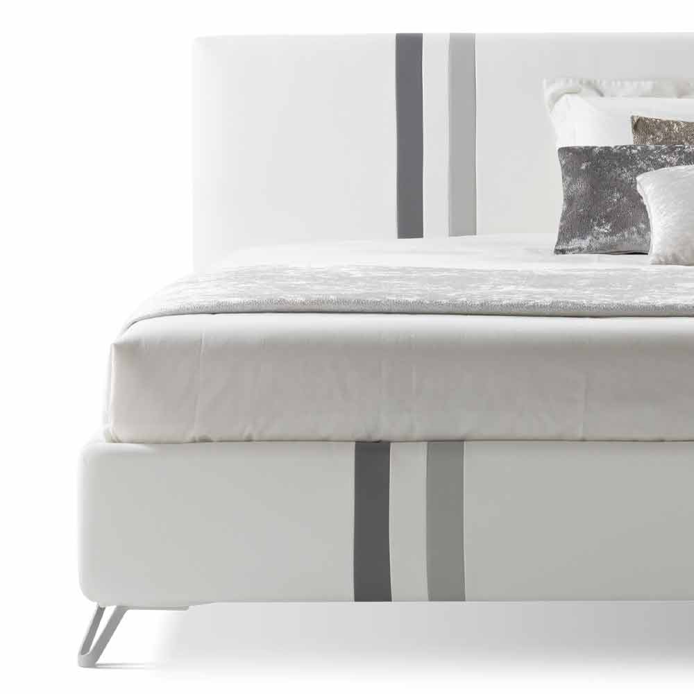 سرير مزدوج فاخر حديث مع صندوق مصنوع يدويًا في إيطاليا من الجلد البيئي.