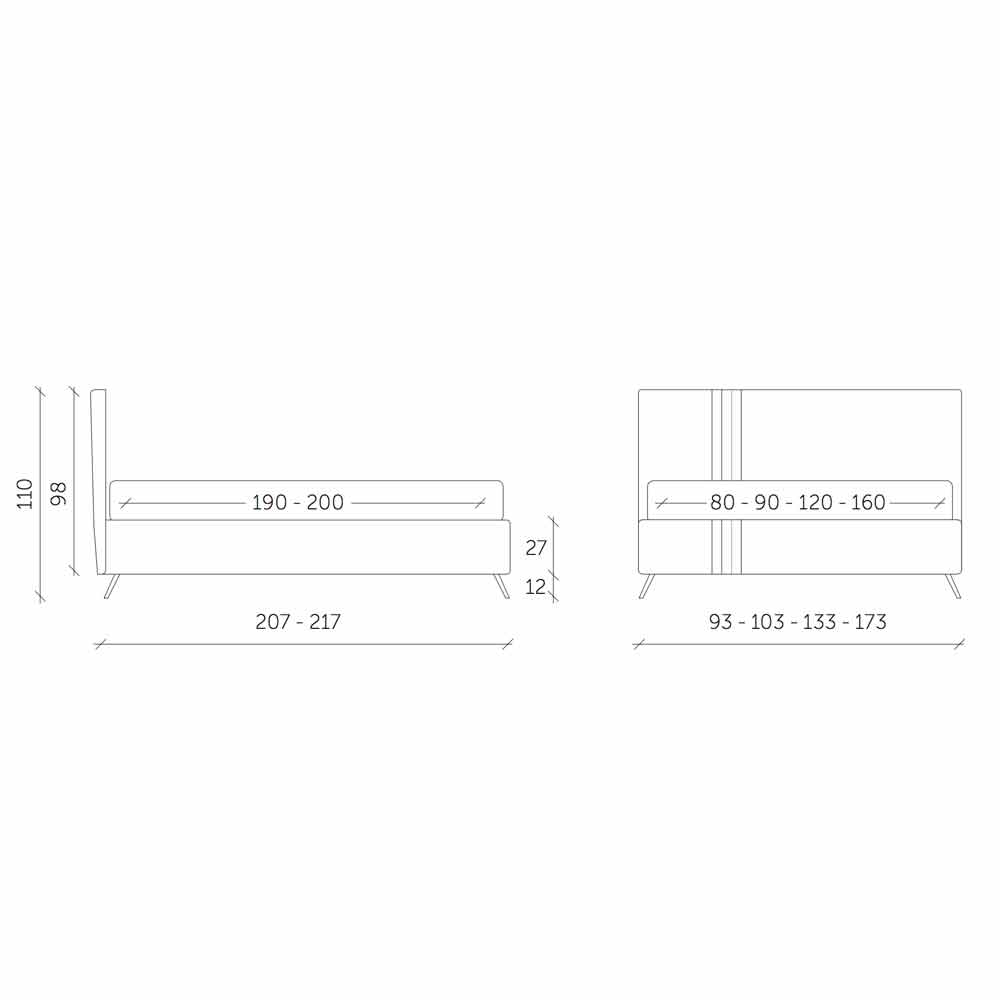 باللون الجلدي البيئي Madryt 920. يتقاطع لوح الرأس وإطار السرير بواسطة شريطين عموديين ومتوازيين من